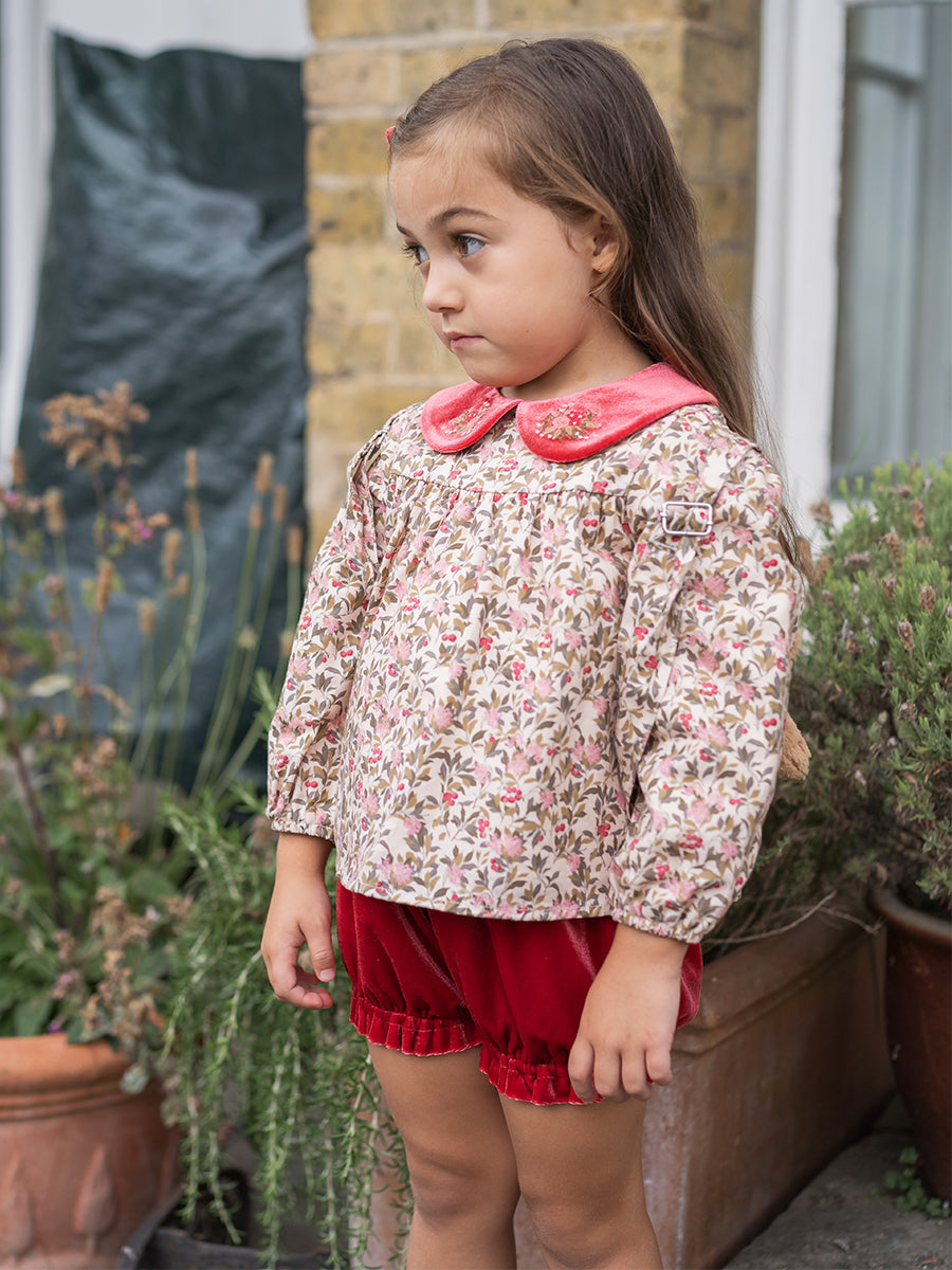 Jessielle Ankle Socks with Floral Ruffle, Misty Pink & Pomegranate Red
