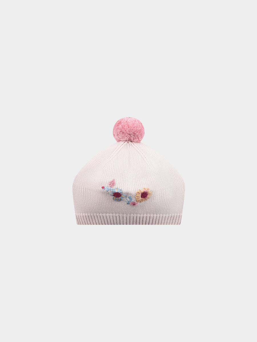 Quinn Hand-Embroidered Knitted Bonnet, Almond White