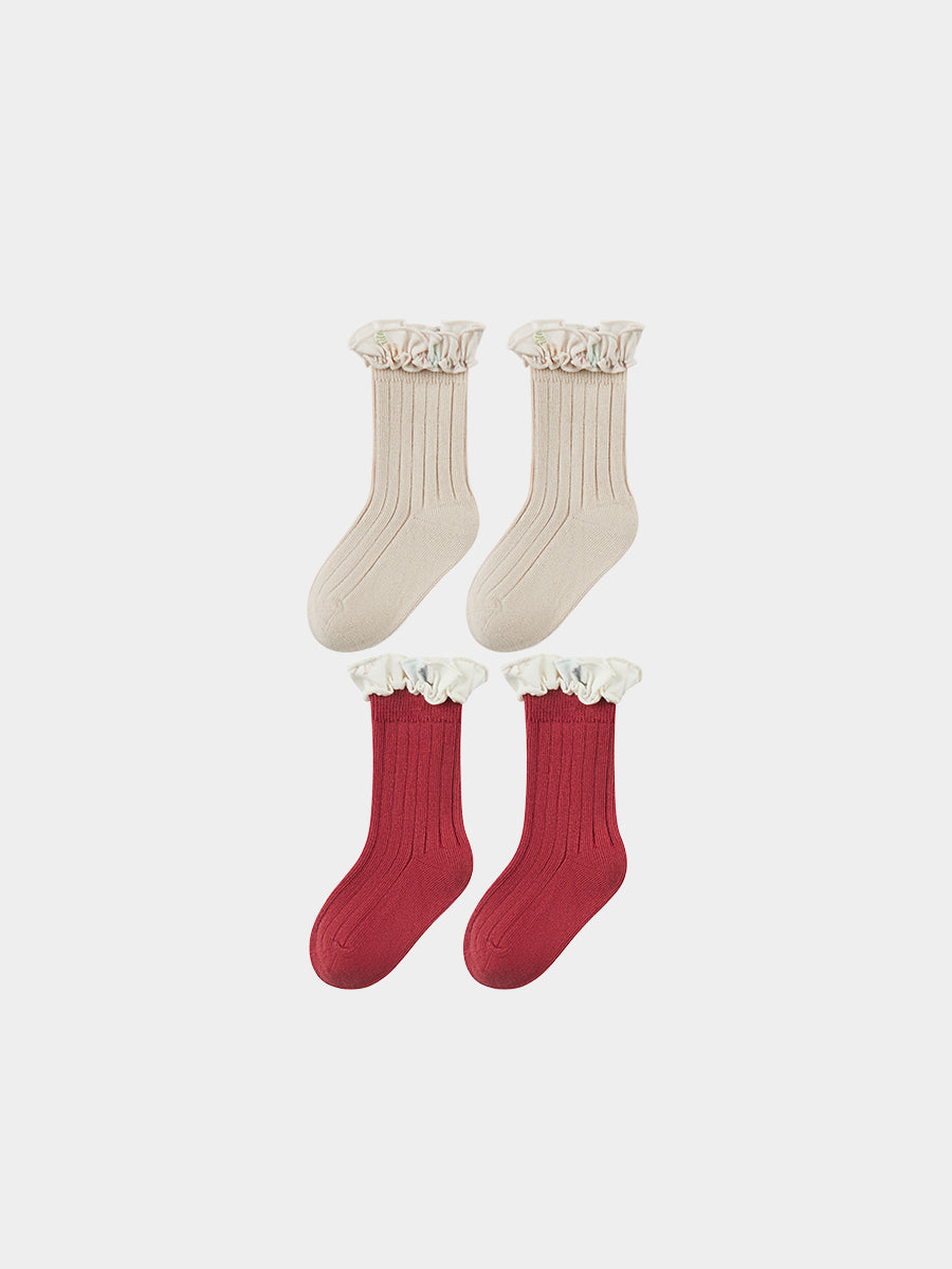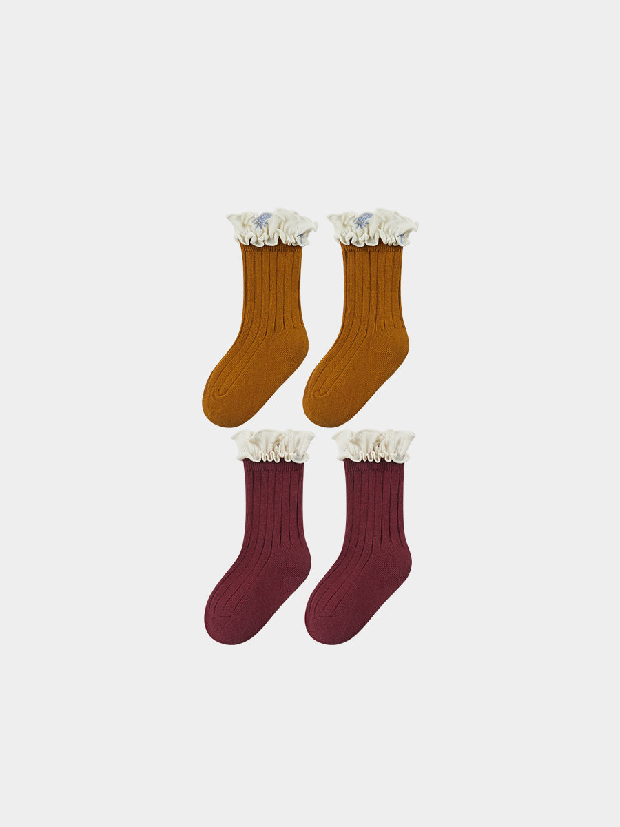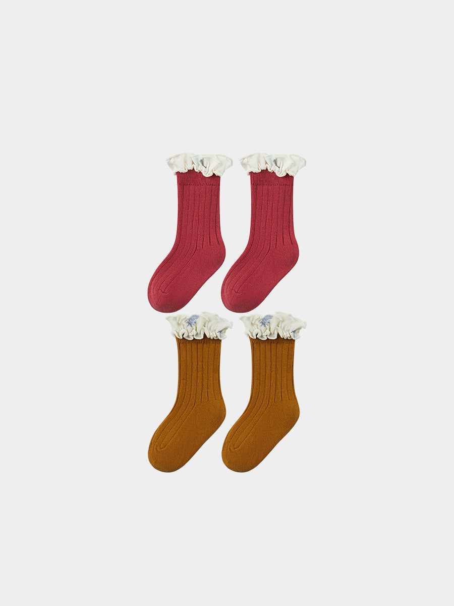 Lace Frill Etienne Knee High Socks Set of 2, Butter Yellow & Lilac