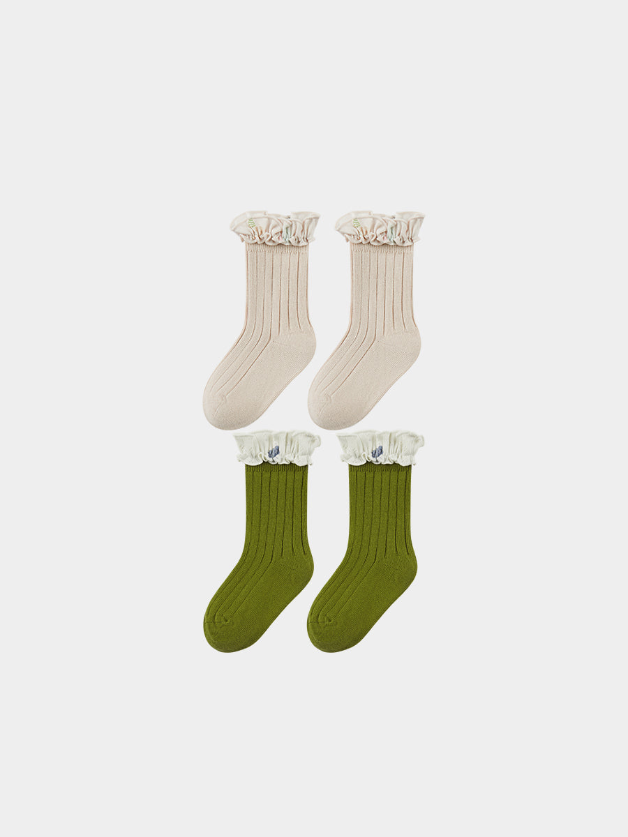 Jessielle Ankle Socks with Floral Ruffle, Avocado Green & Crème Brulee