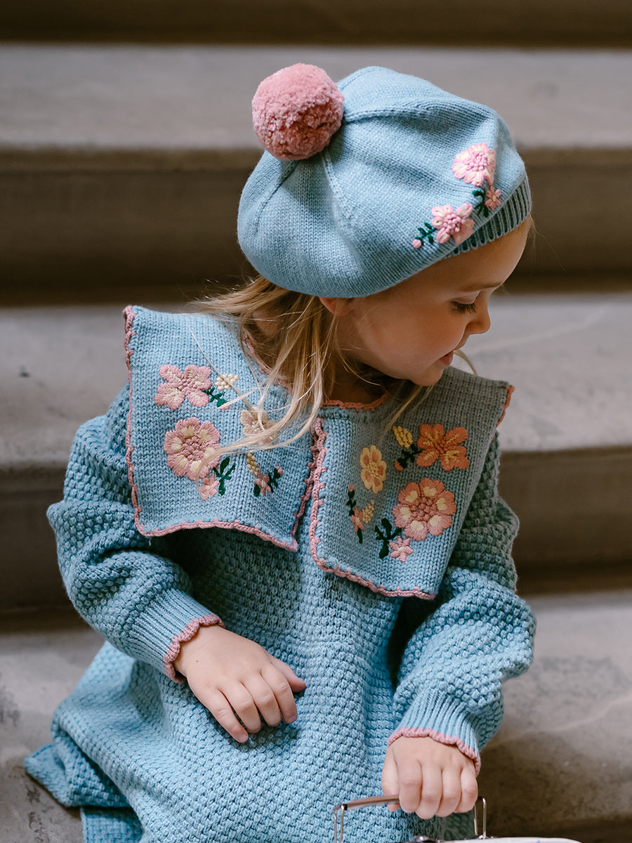 Betty Knitted Beret Hat, Aqua Blue