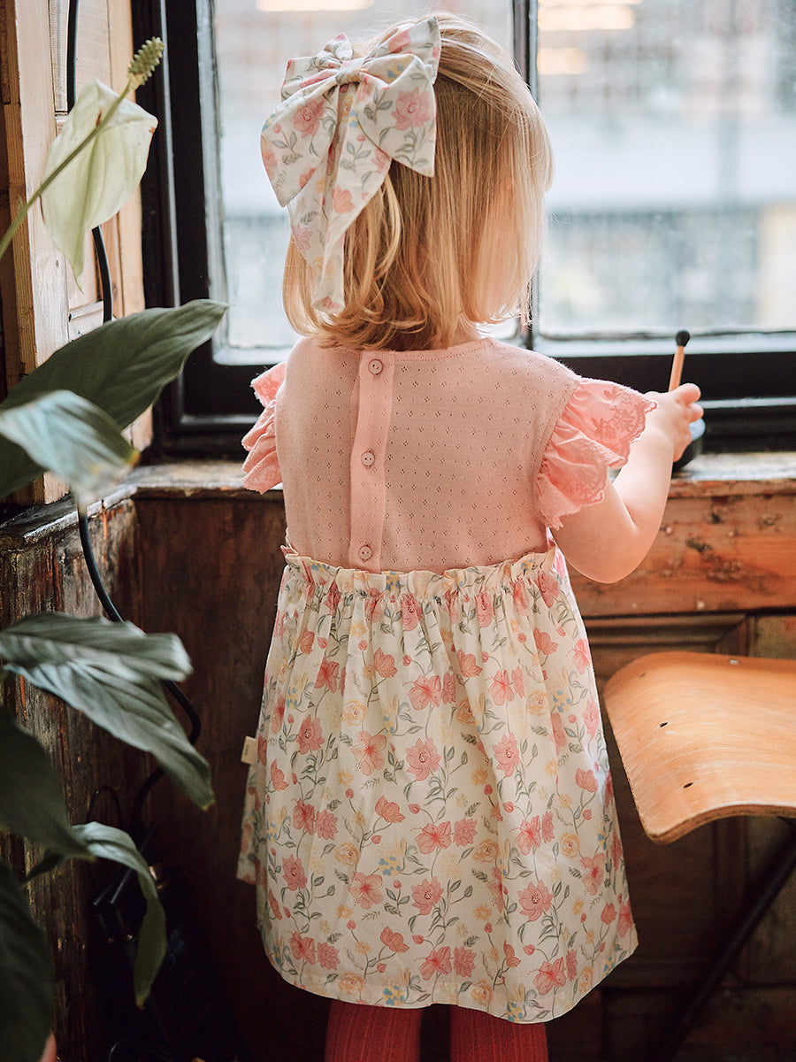 Laila Embroidered Dress, Strawberry Flower Field, Blush