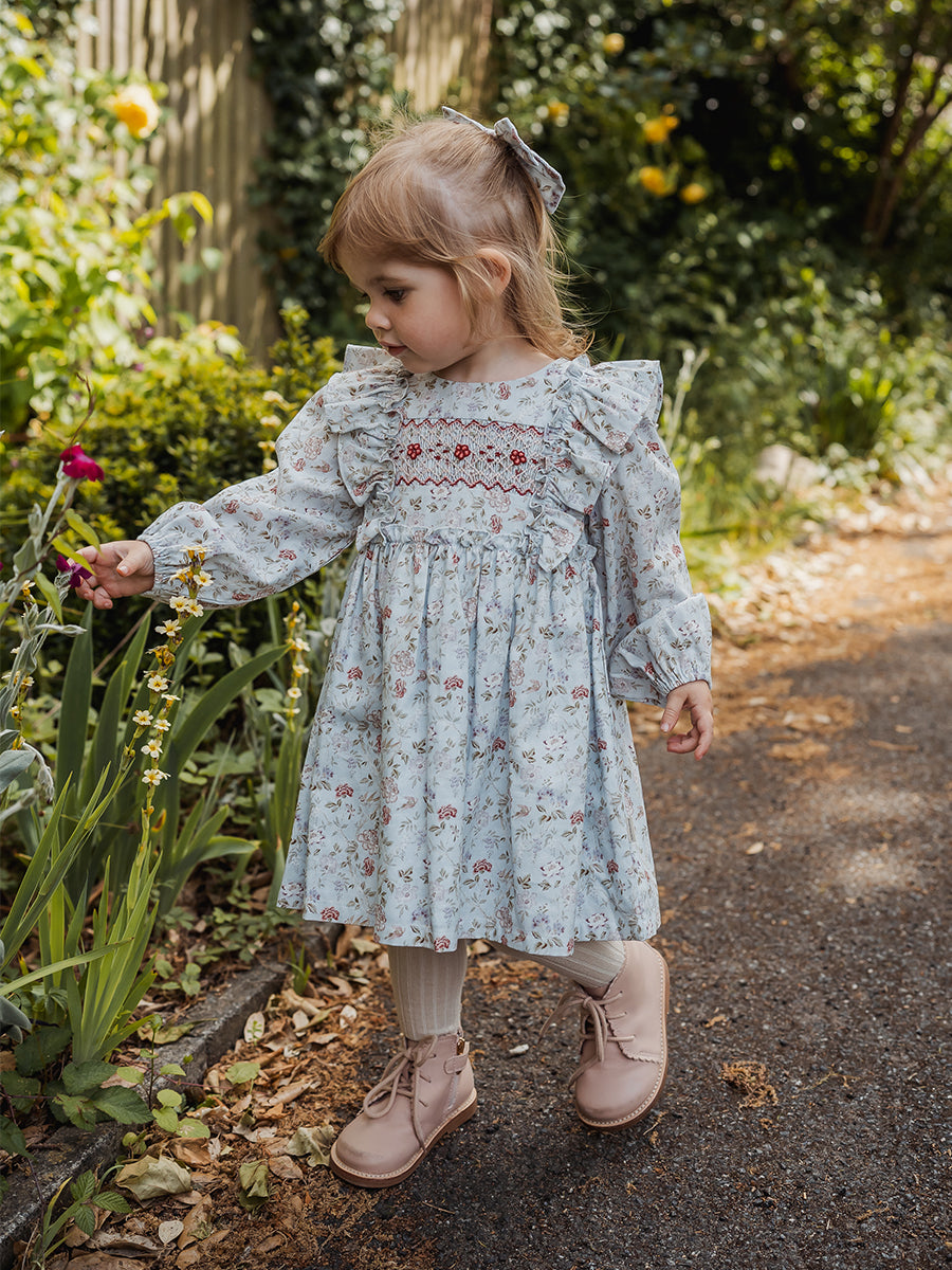 Abigail Hand-Smocked Dress, Wisteria Garden, Blue