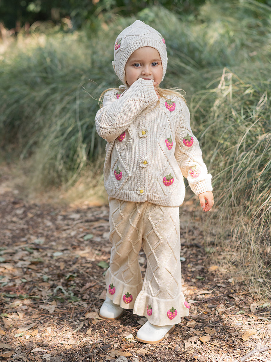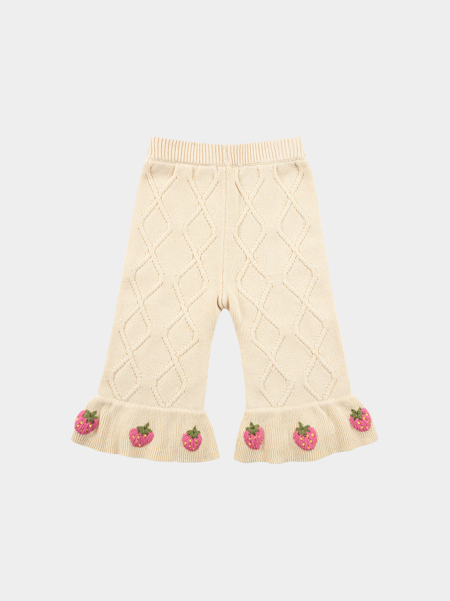 Strawberry Hand-Embroidered Knitted Pants, Crème Brulee