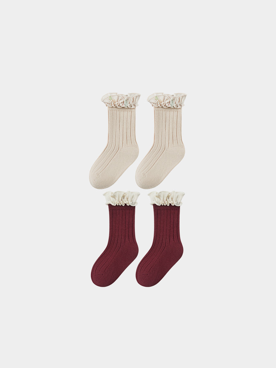 Jessielle Ankle Socks with Floral Ruffle, Pomegranate Red & Crème Brulee