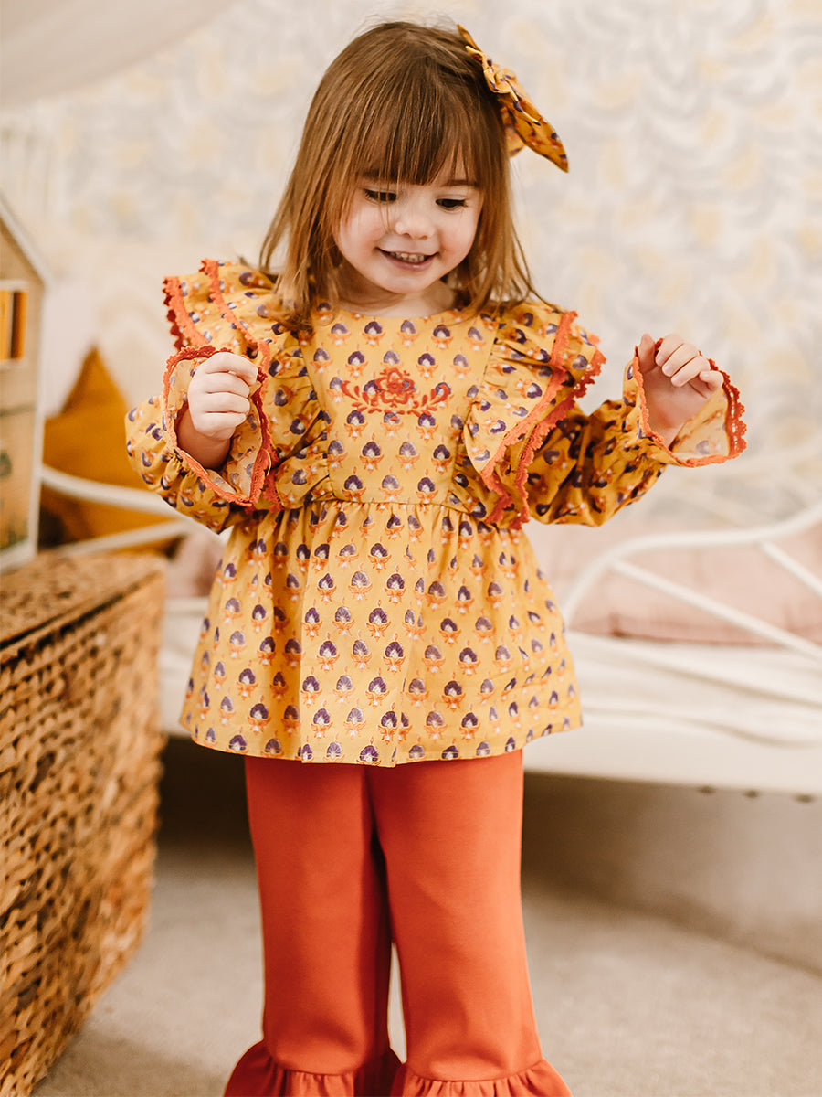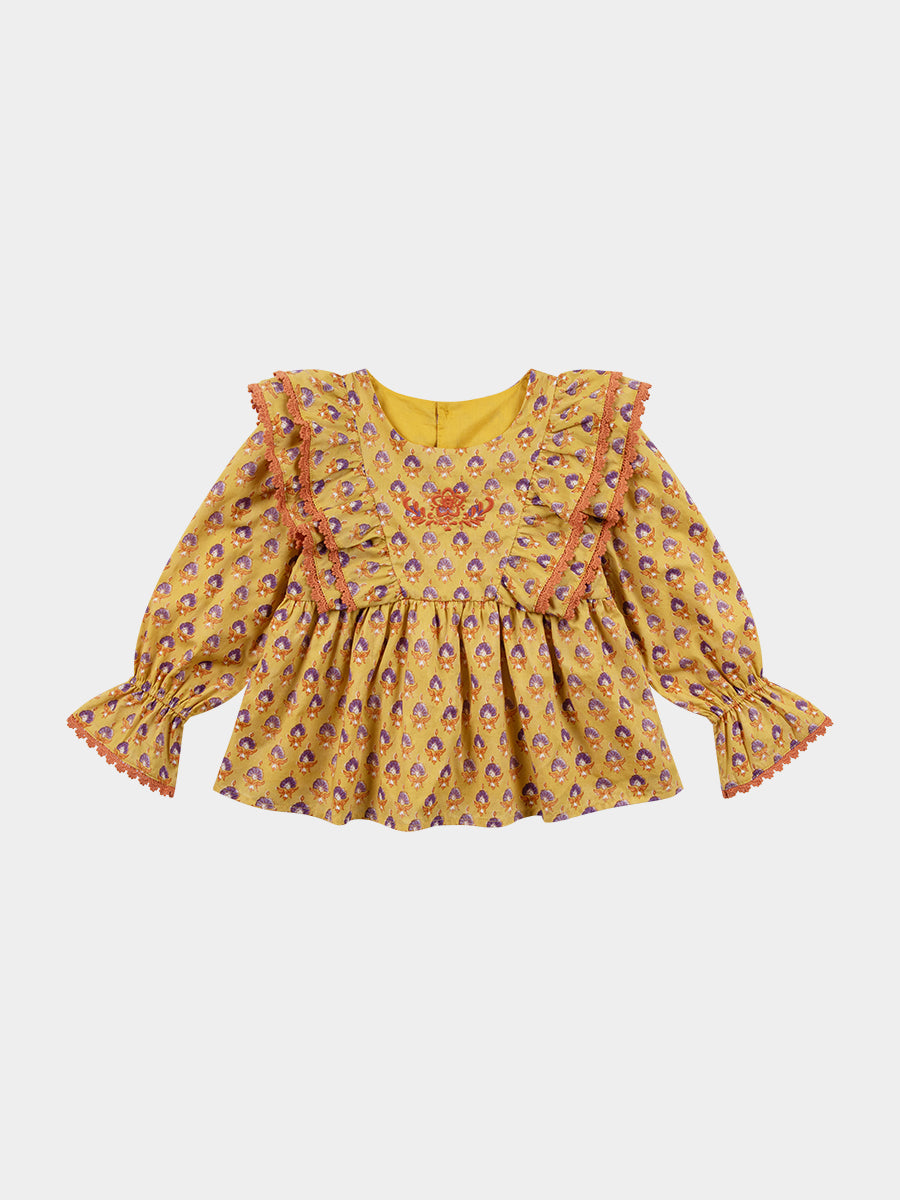 Sia Embroidered Blouse, Printed Rosa Yellow