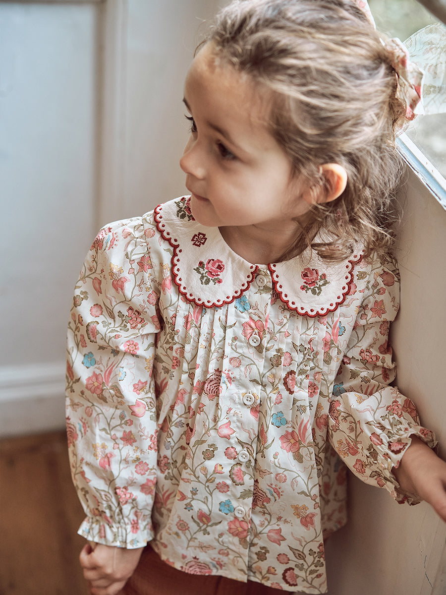Sia Embroidered Blouse, Antique Floral Lattice