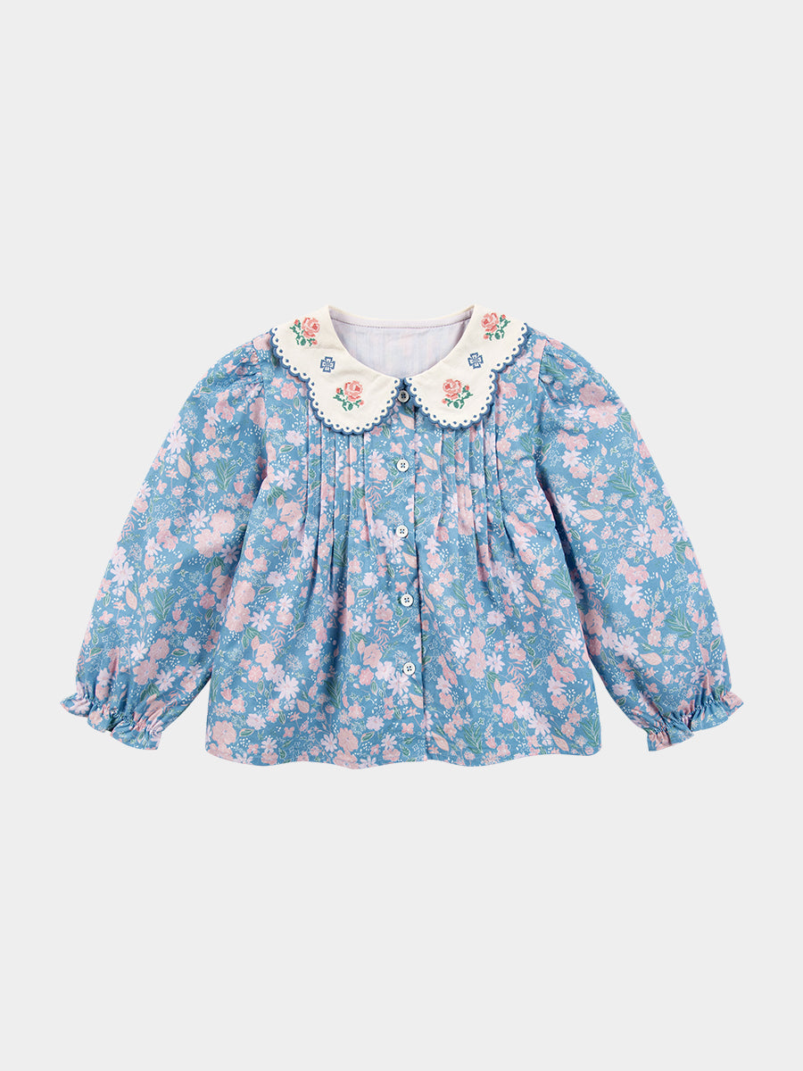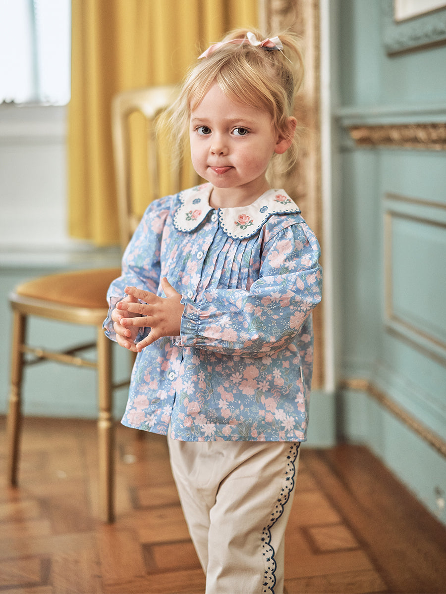Monceux Embroidered Blouse, Wildflower Lawn - Blue