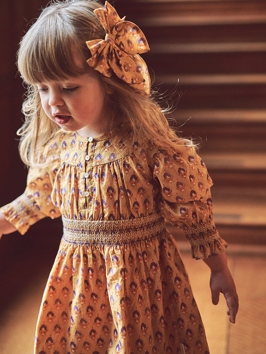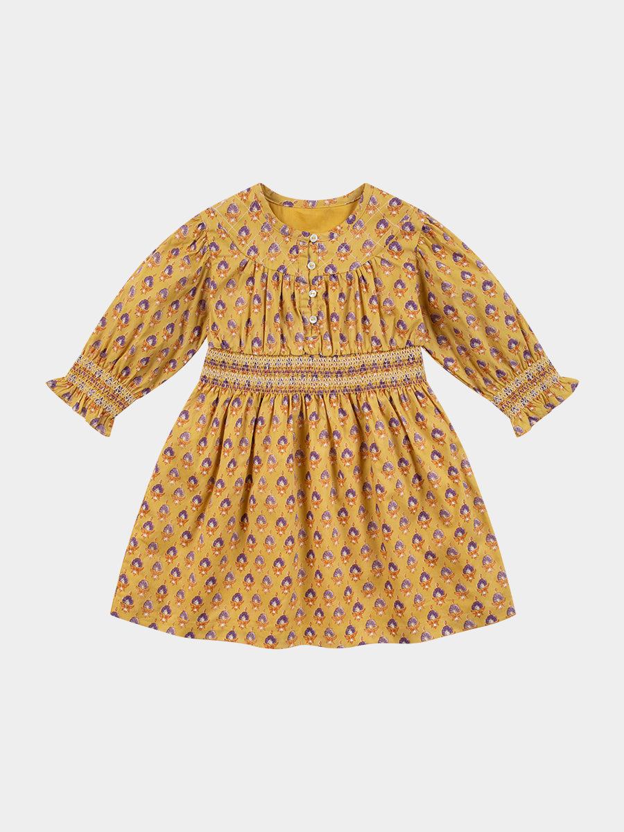 Shea Smocked Dress, Printed Rosa Yellow