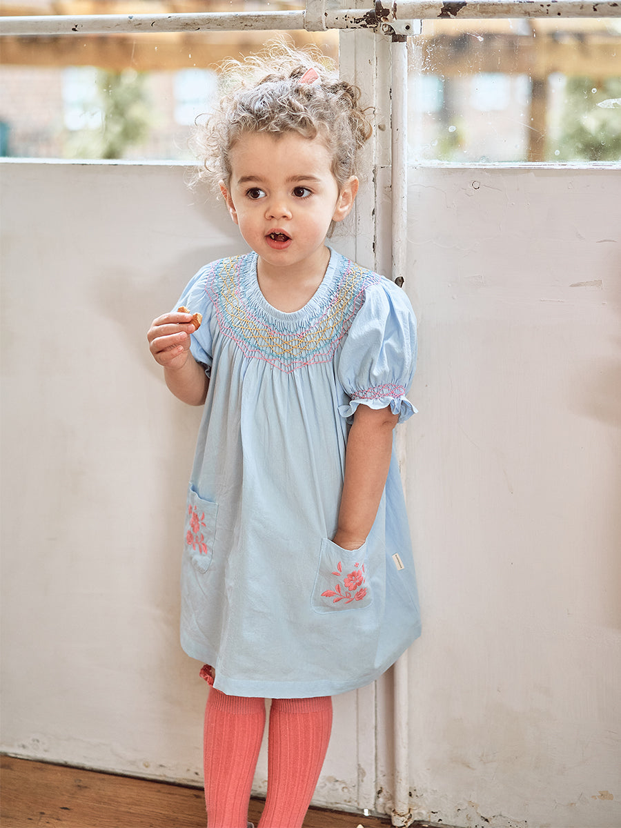 Shanaya Hand Smocked Dress, Baby Blue