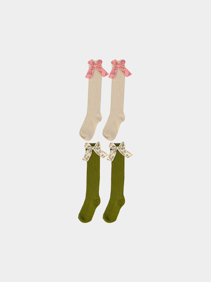 Noelle Bow Socks, Avocado Green & Crème Brulee