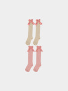 Noelle Bow Socks, Misty Pink & Crème Brulee