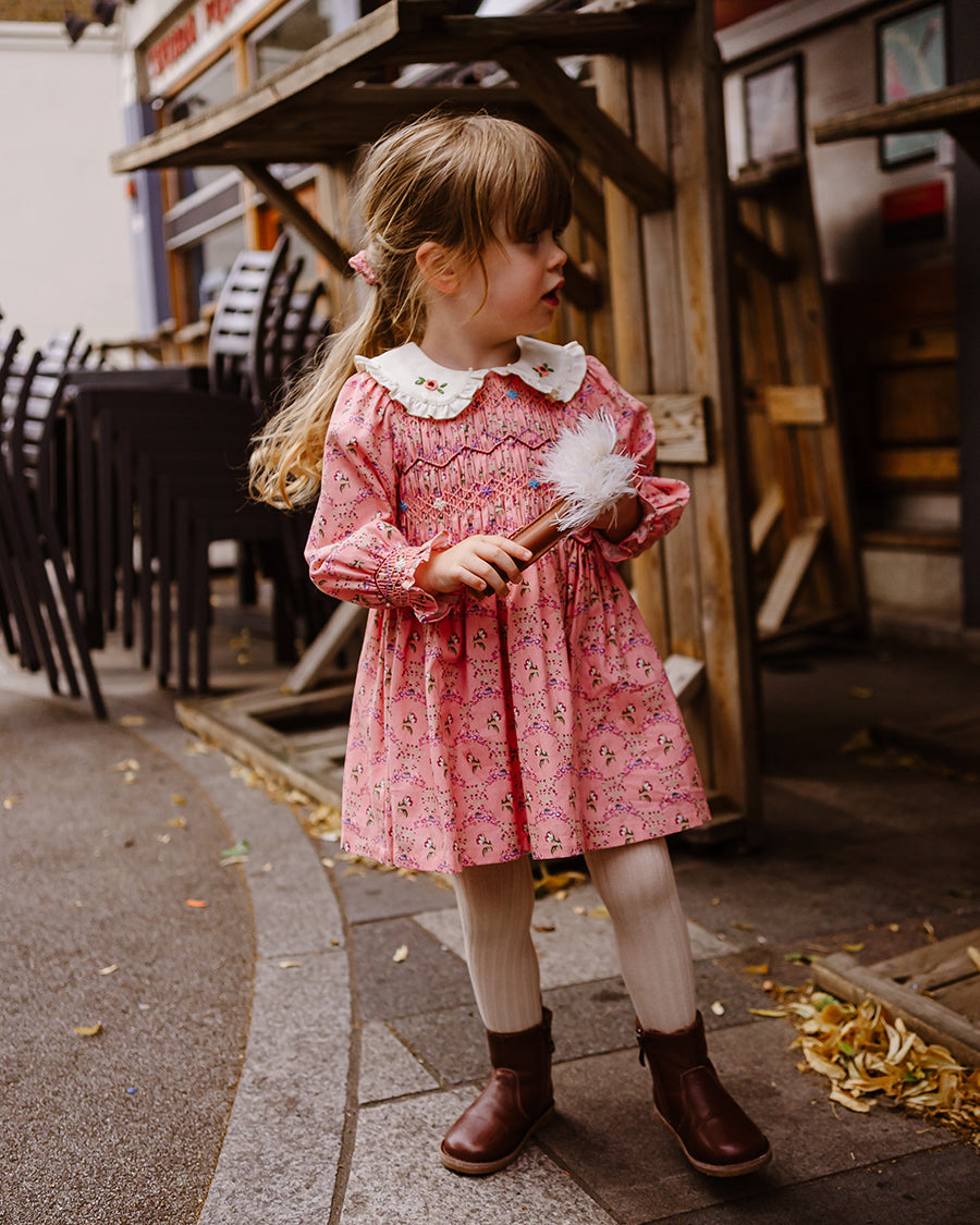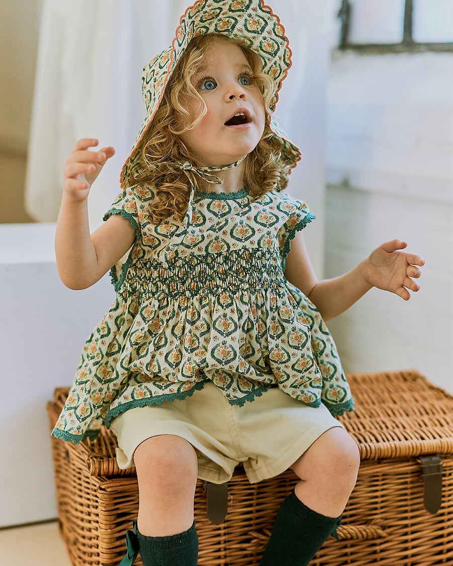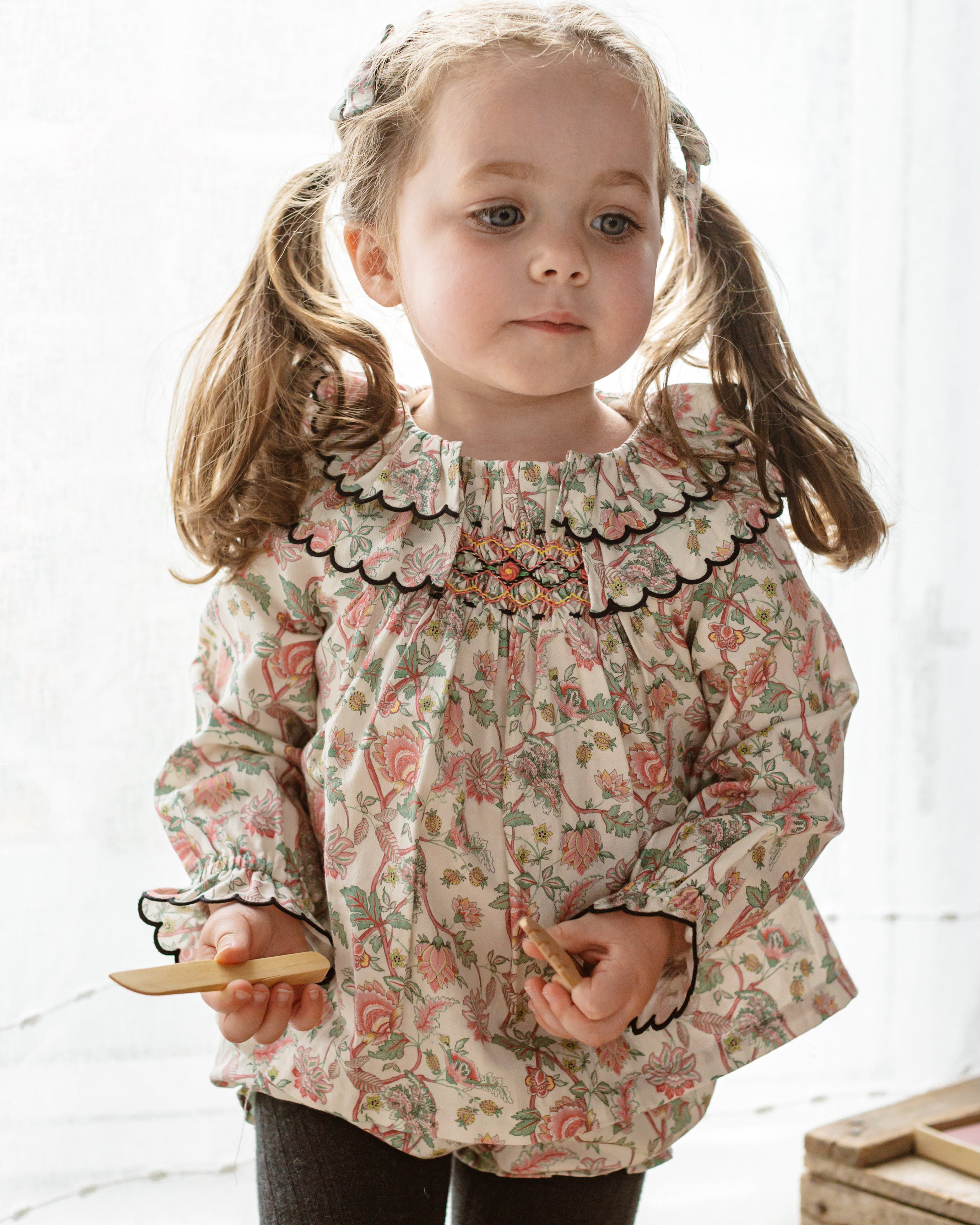Our handmade pieces are lovingly brought to life by our in-house artisans — hand-smocked, hand-embroidered, delicately beaded and finished with beautiful attention to detail. Made in small quantities, each style is a little work of art, designed to be worn, treasured, and passed on.