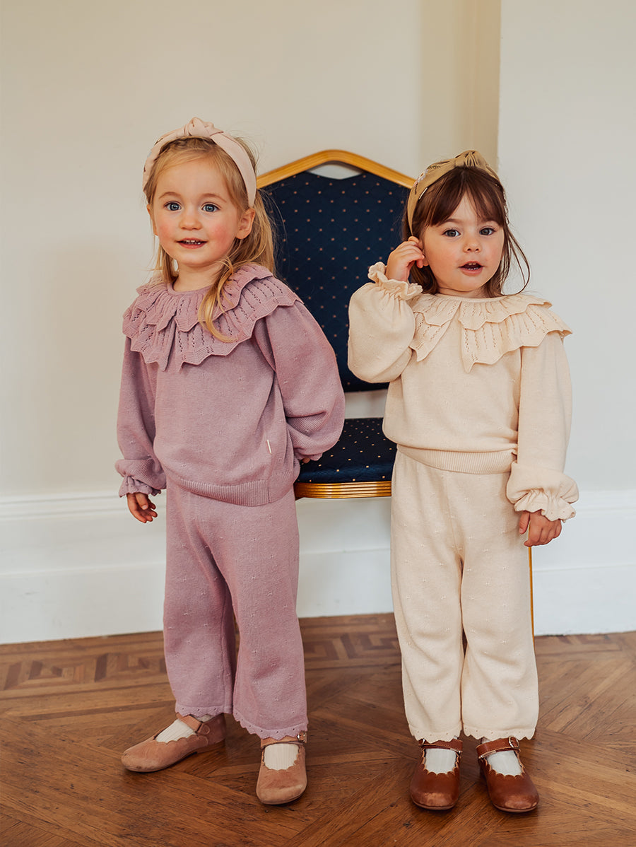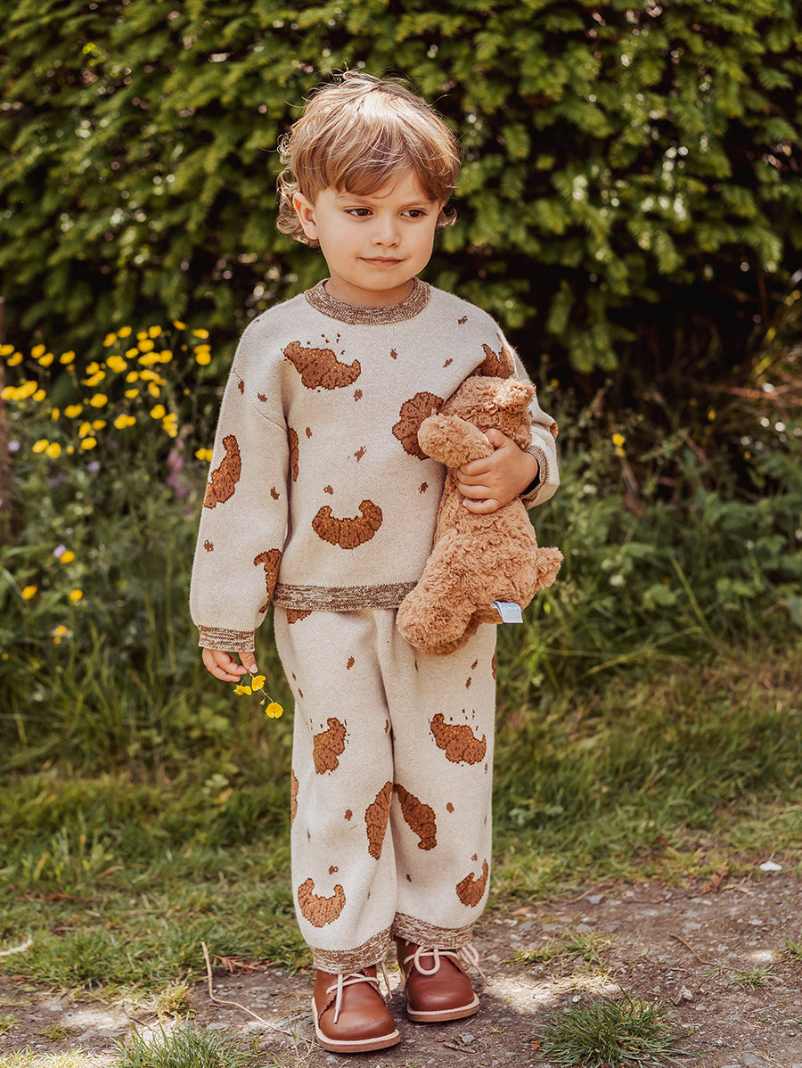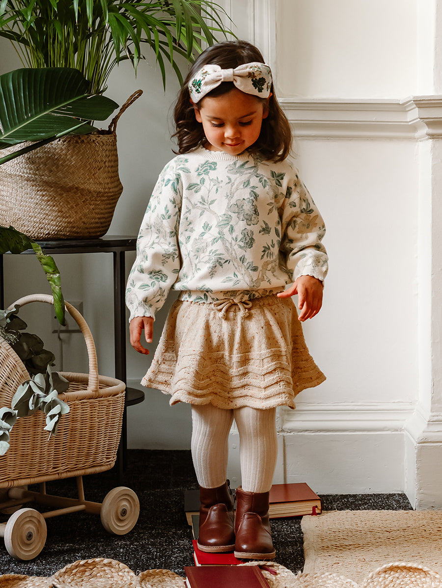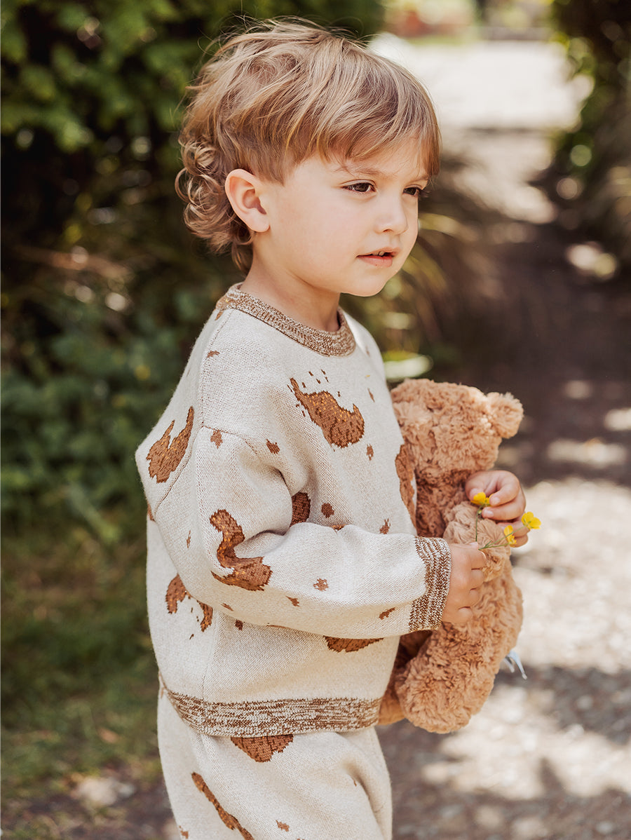Crafted from the finest natural yarns - plush cashmere, extra-fine merino wool, and soft cotton - our knitwear wraps little ones in breathable warmth and everyday comfort. From timeless silhouettes to our signature Fair Isle patterns, each piece is designed and knitted in-house.