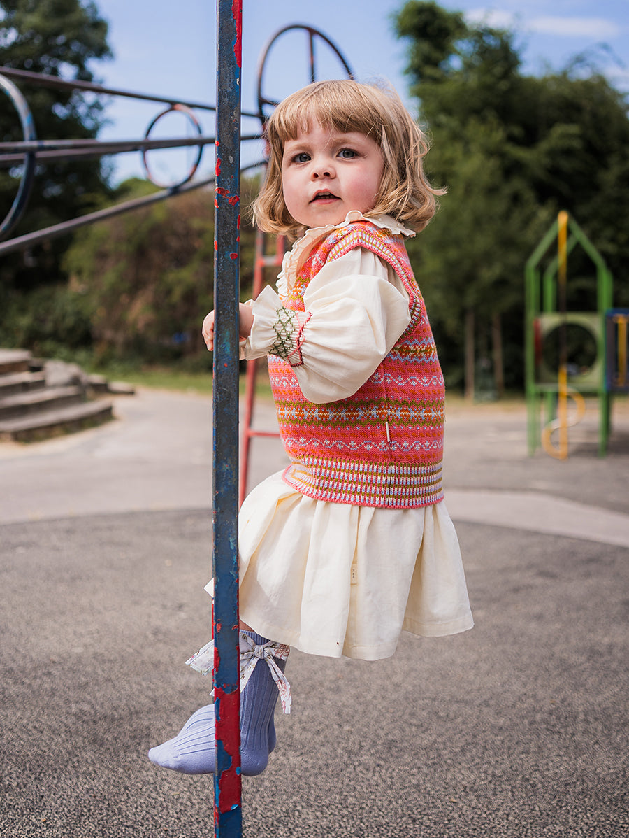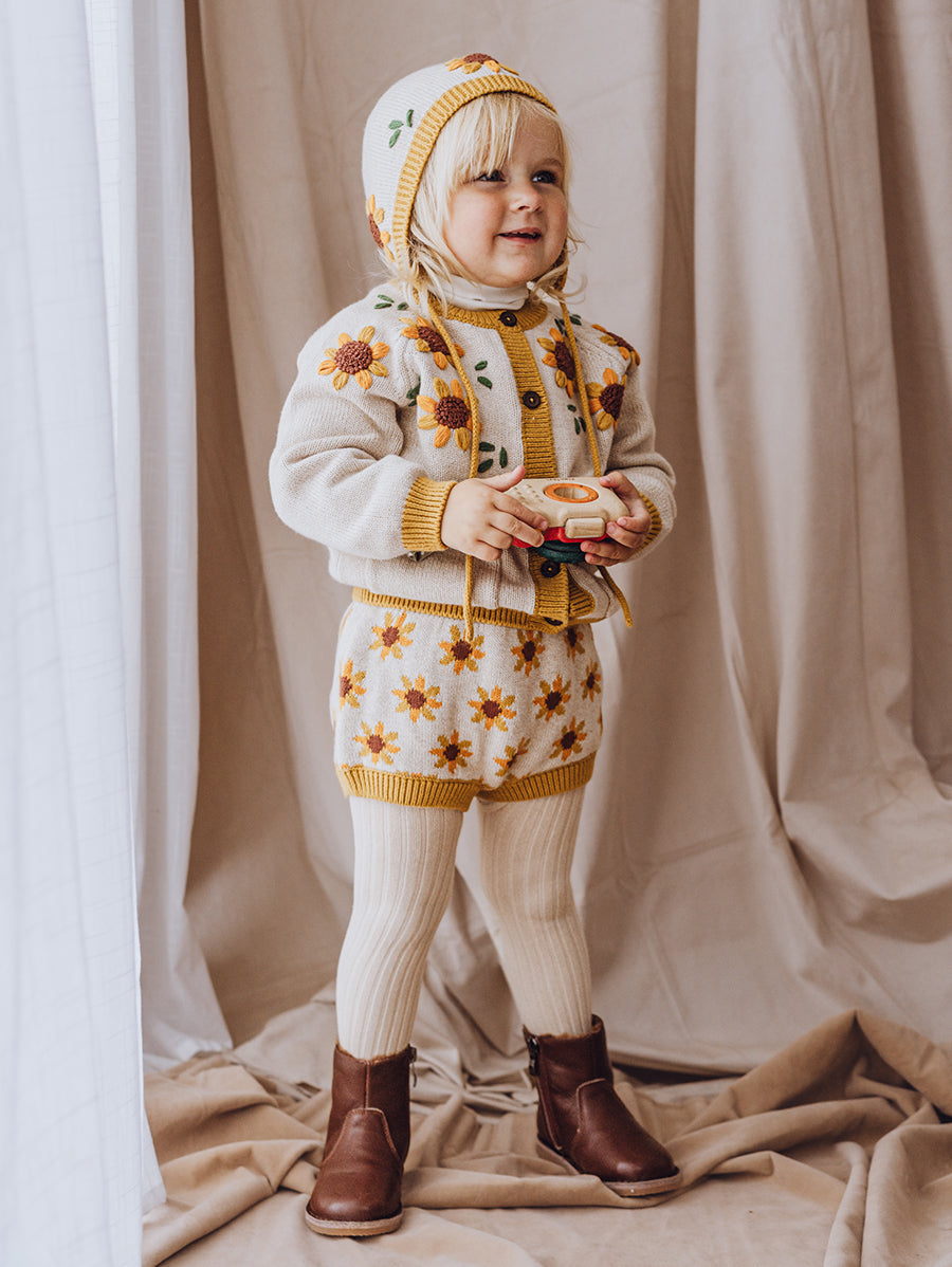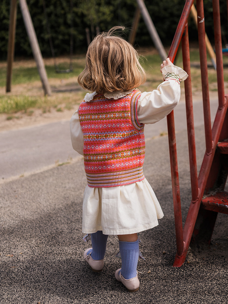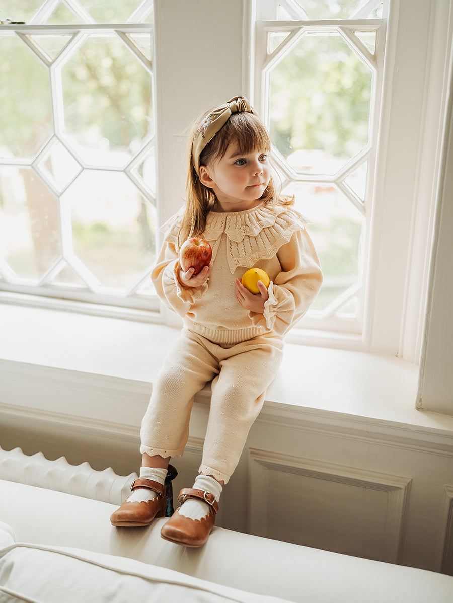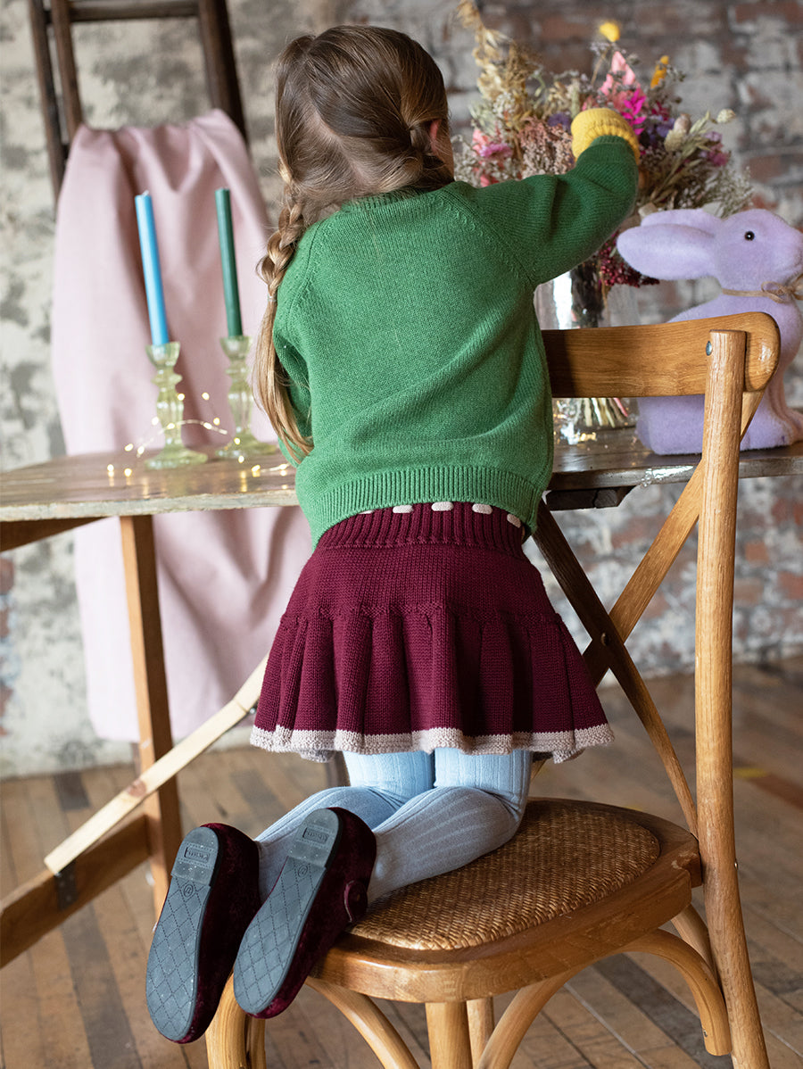 Crafted from the finest natural yarns - plush cashmere, extra-fine merino wool, and soft cotton - our knitwear wraps little ones in breathable warmth and everyday comfort. From timeless silhouettes to our signature Fair Isle patterns, each piece is designed and knitted in-house.