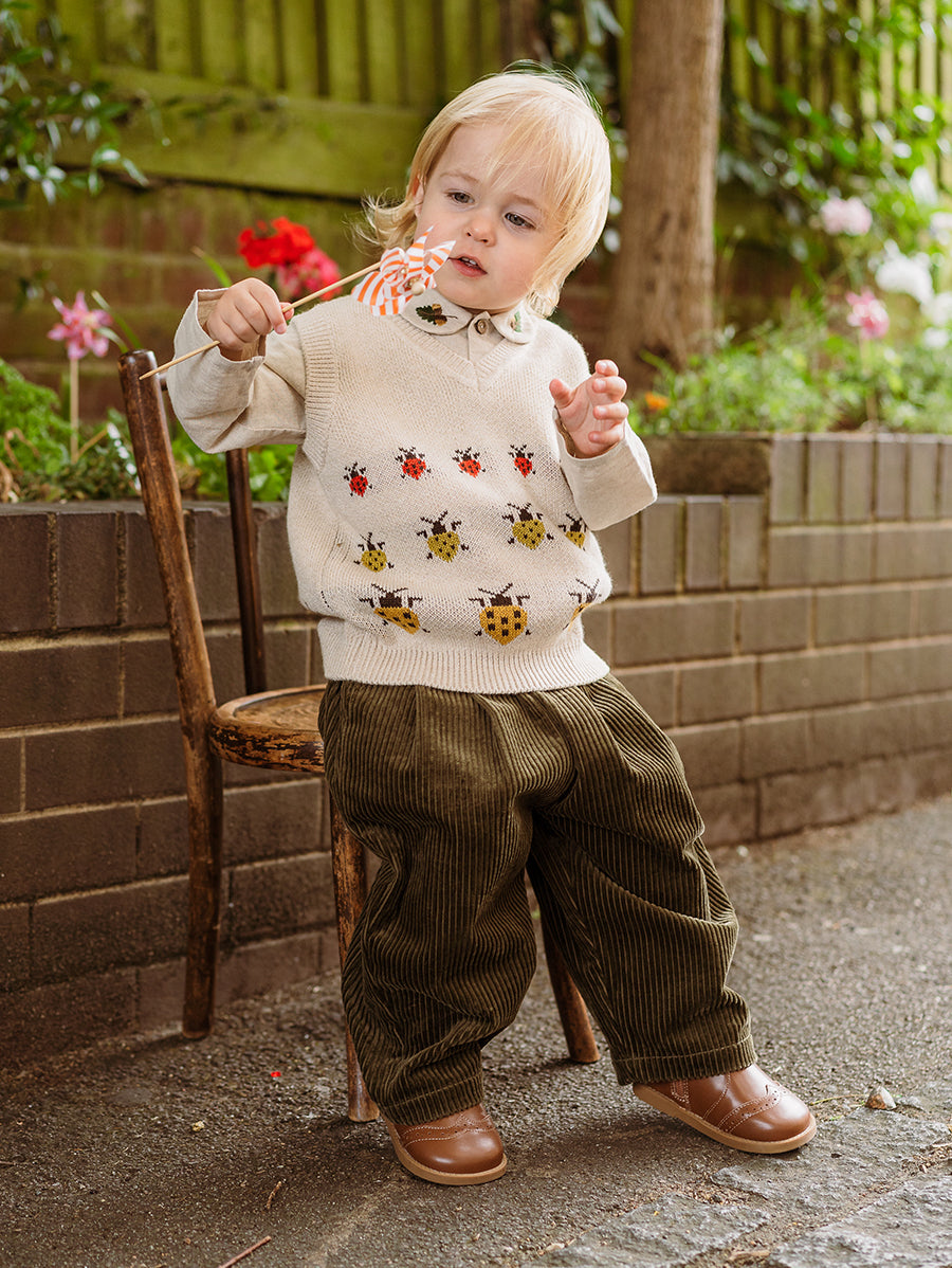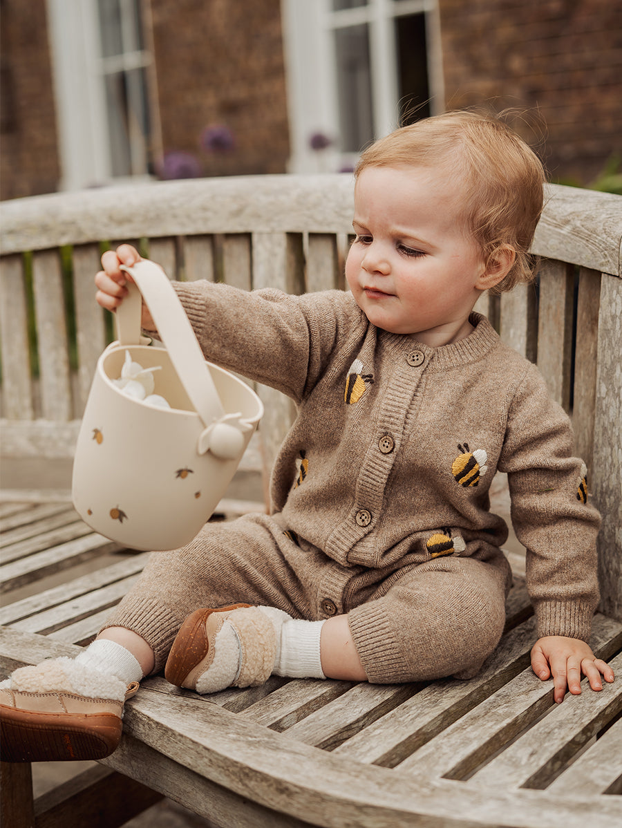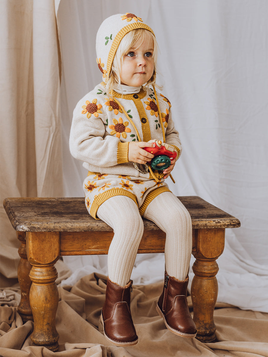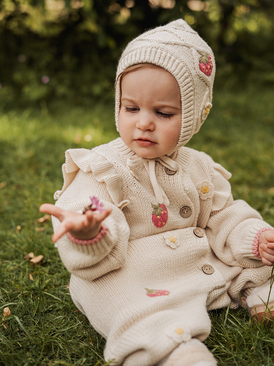 Crafted from the finest natural yarns - plush cashmere, extra-fine merino wool, and soft cotton - our knitwear wraps little ones in breathable warmth and everyday comfort. From timeless silhouettes to our signature Fair Isle patterns, each piece is designed and knitted in-house.
