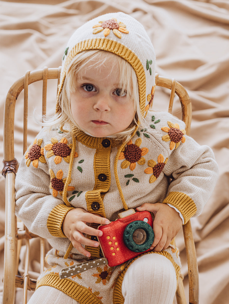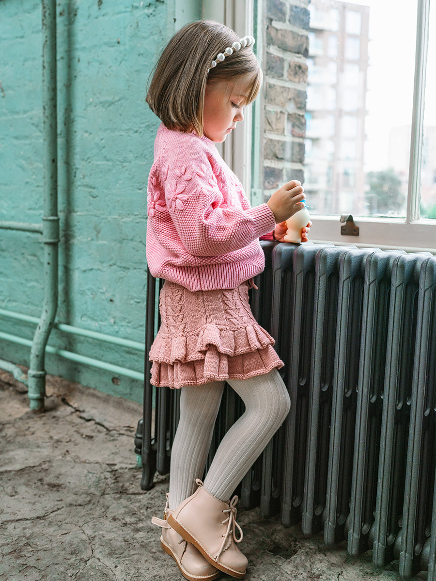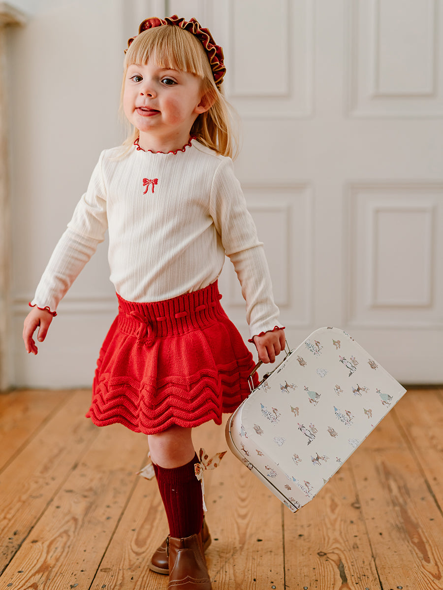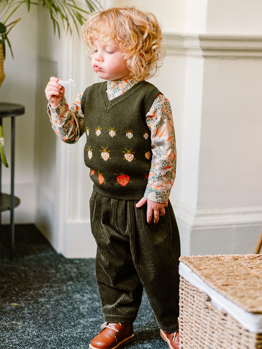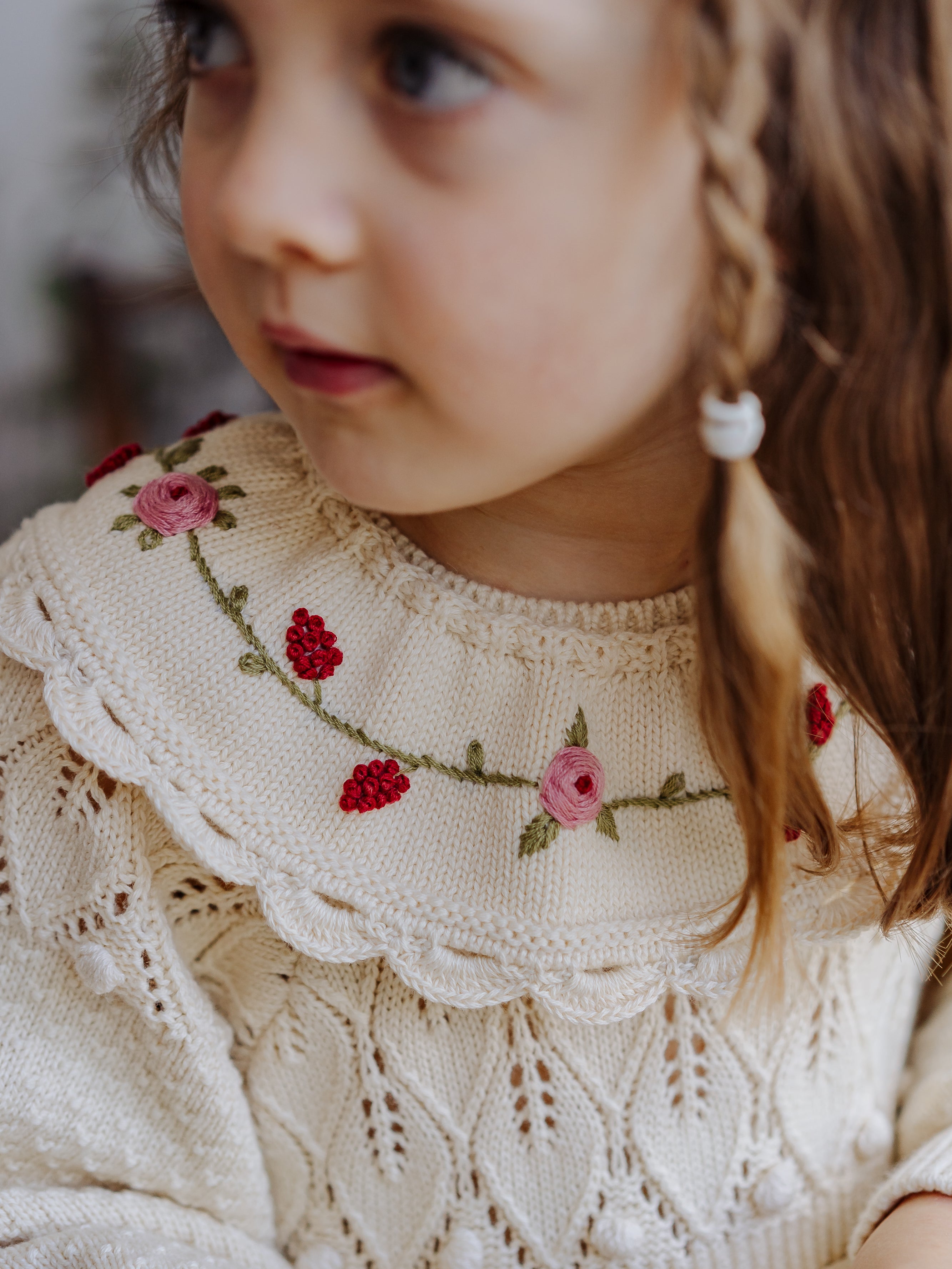 Crafted from the finest natural yarns - plush cashmere, extra-fine merino wool, and soft cotton - our knitwear wraps little ones in breathable warmth and everyday comfort. From timeless silhouettes to our signature Fair Isle patterns, each piece is designed and knitted in-house.