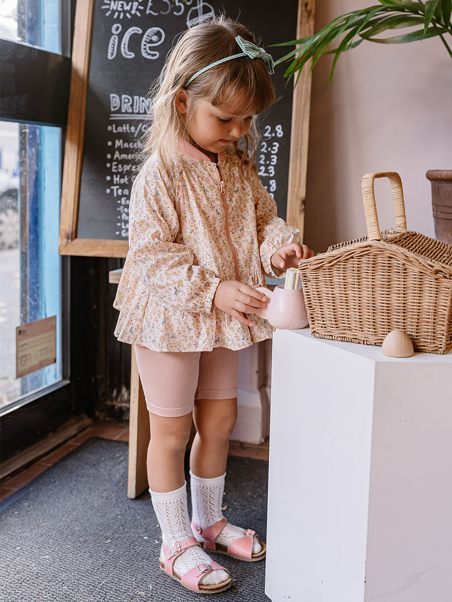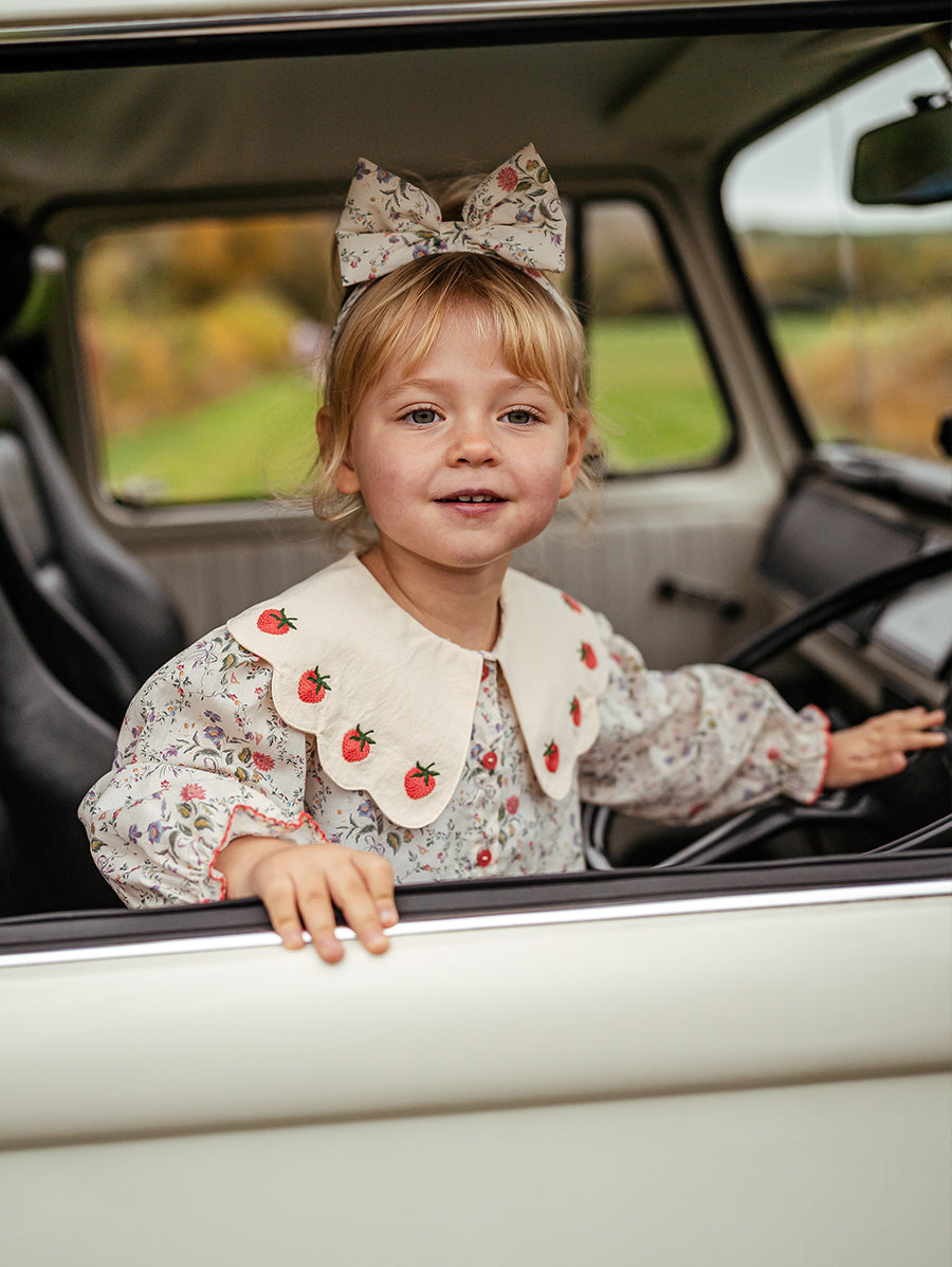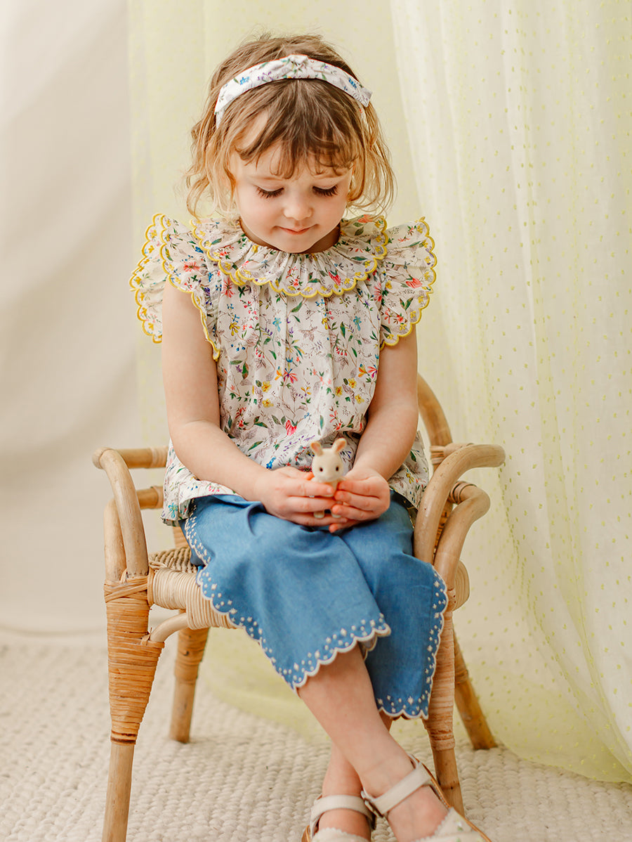 Titled Wildflowers & Wonders, the collection explores the idea of sensory nostalgia - clothing designed to evoke memory through softness and craft. Romantic florals scatter across airy organic cottons, while delicate hand-smocking and embroidery add a quietly luxurious, heirloom touch so clothing feels not only beautiful but also comforting with the familiarity of favourite garments worn through long summer days.