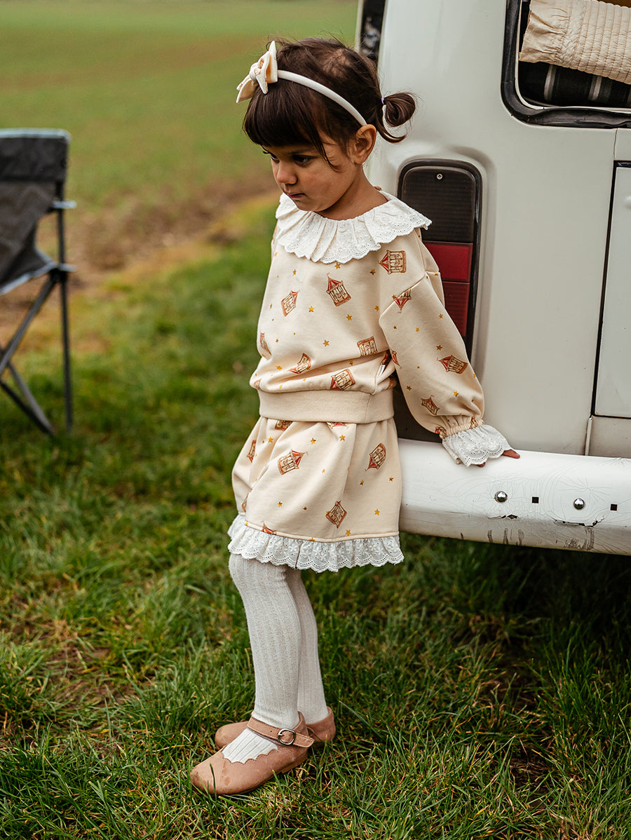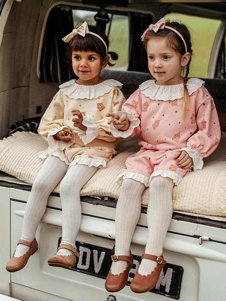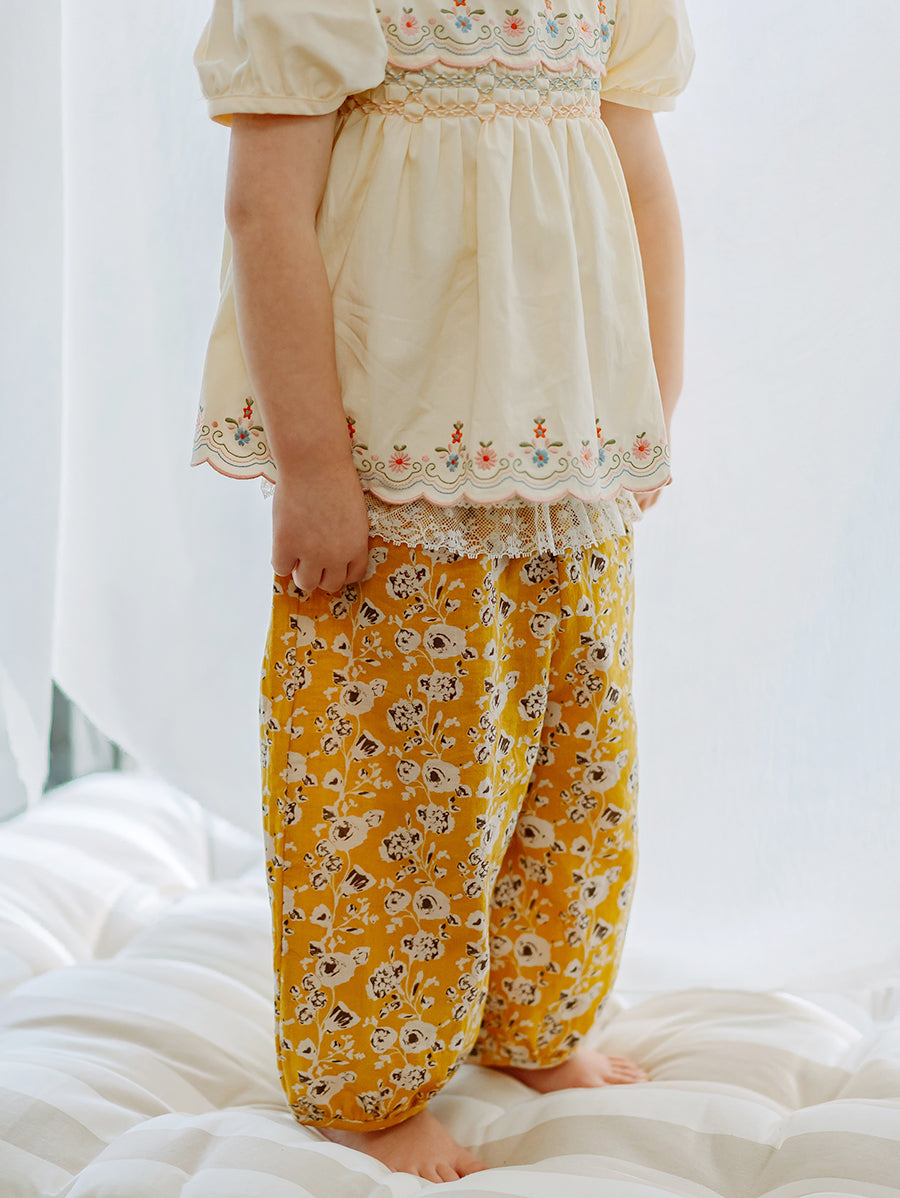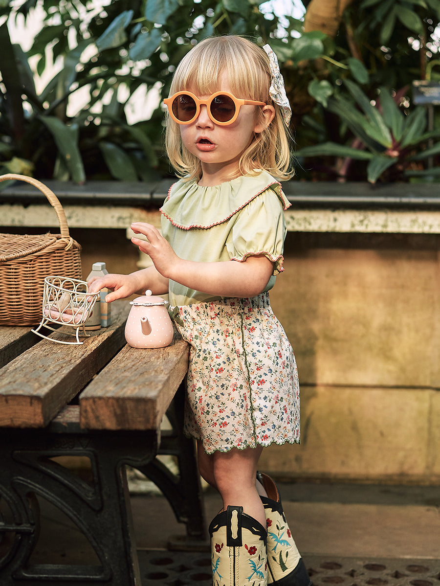 Titled Wildflowers & Wonders, the collection explores the idea of sensory nostalgia - clothing designed to evoke memory through softness and craft. Romantic florals scatter across airy organic cottons, while delicate hand-smocking and embroidery add a quietly luxurious, heirloom touch so clothing feels not only beautiful but also comforting with the familiarity of favourite garments worn through long summer days.