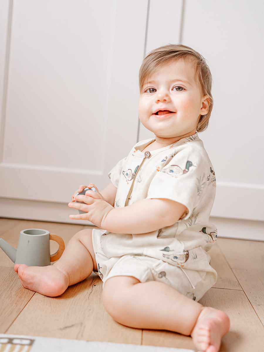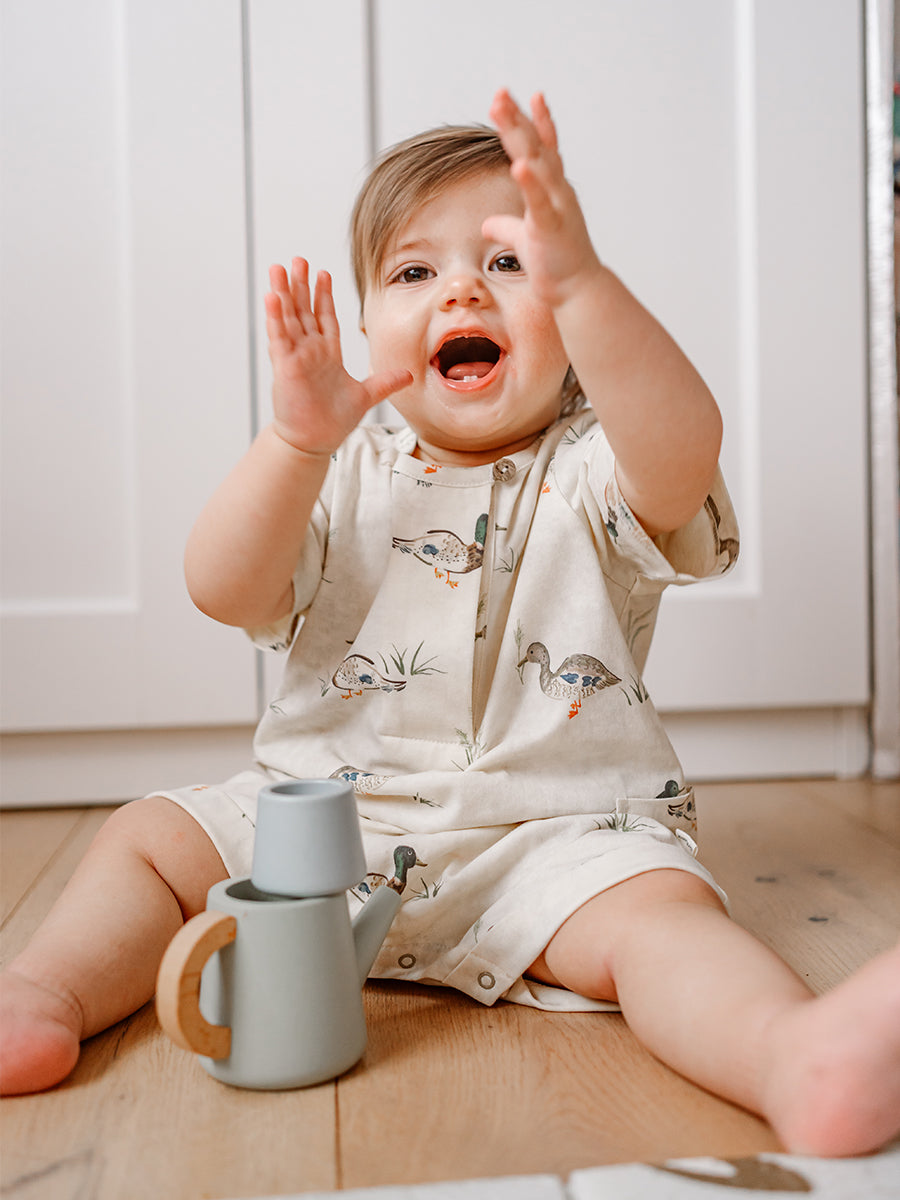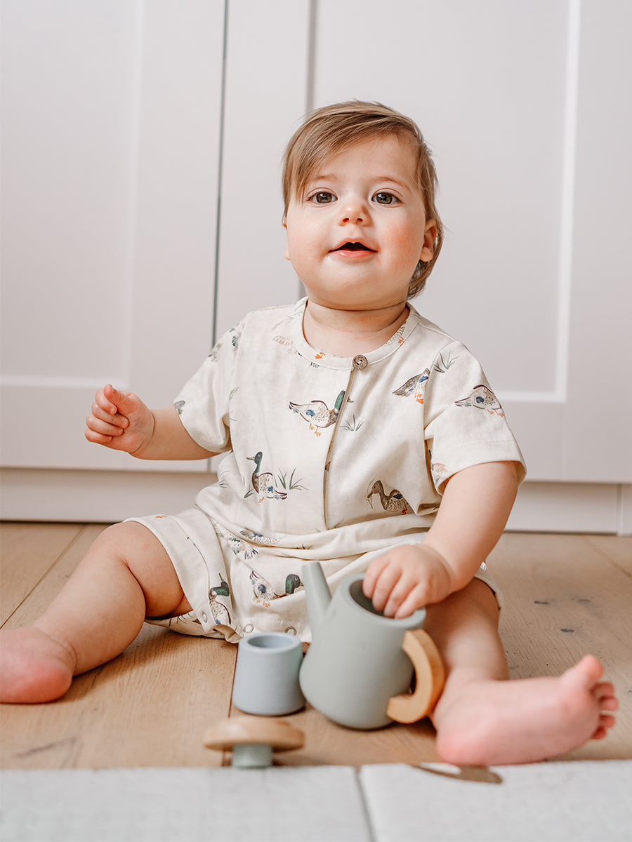 Porto Jersey Romper, Little Teals, Cream