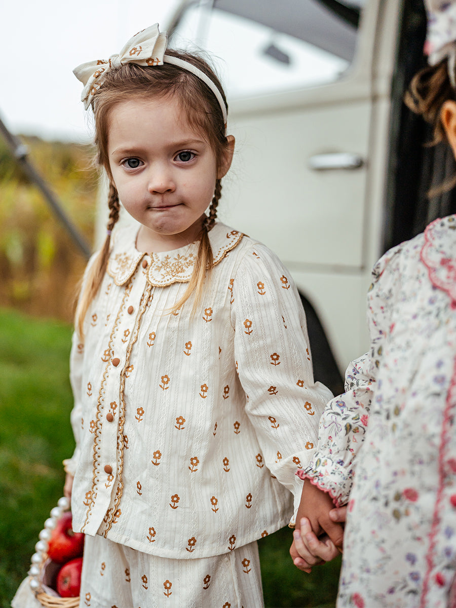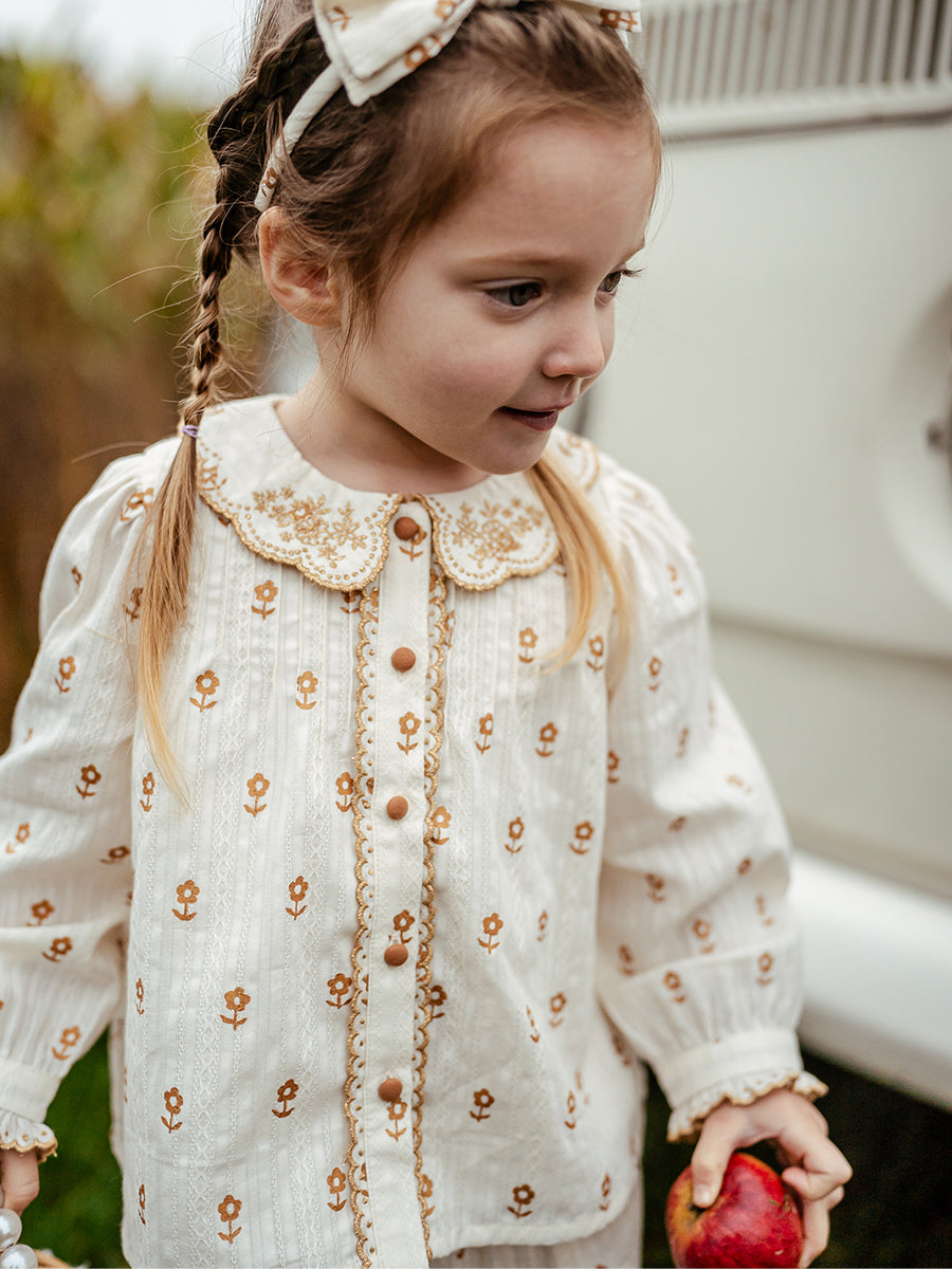 Winchester Embroidered Blouse, Wood Block Flower, Cream