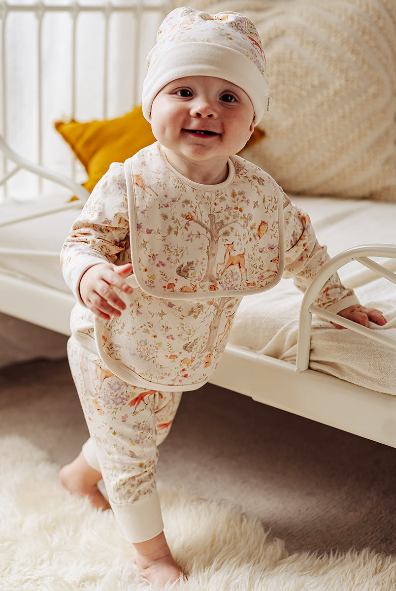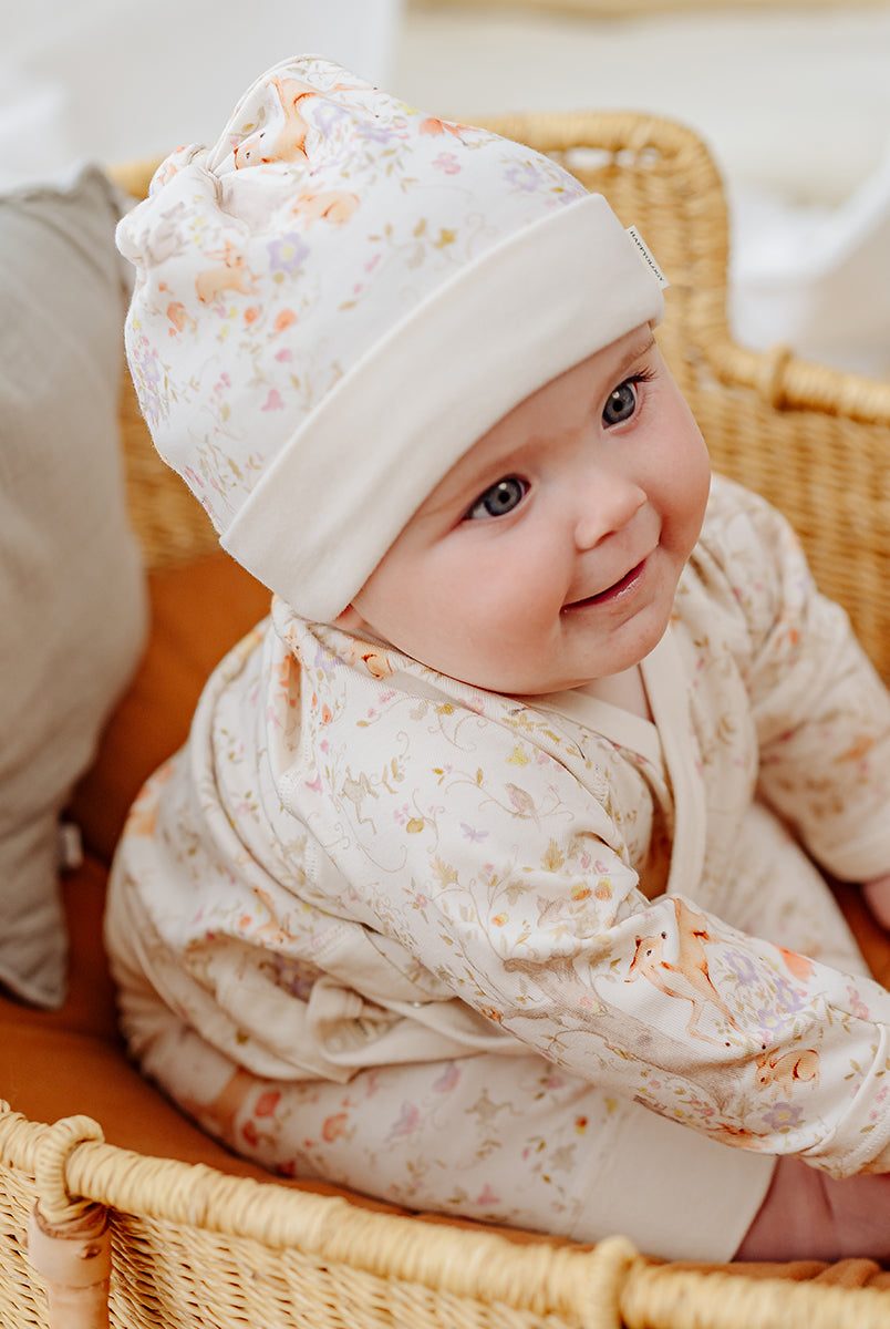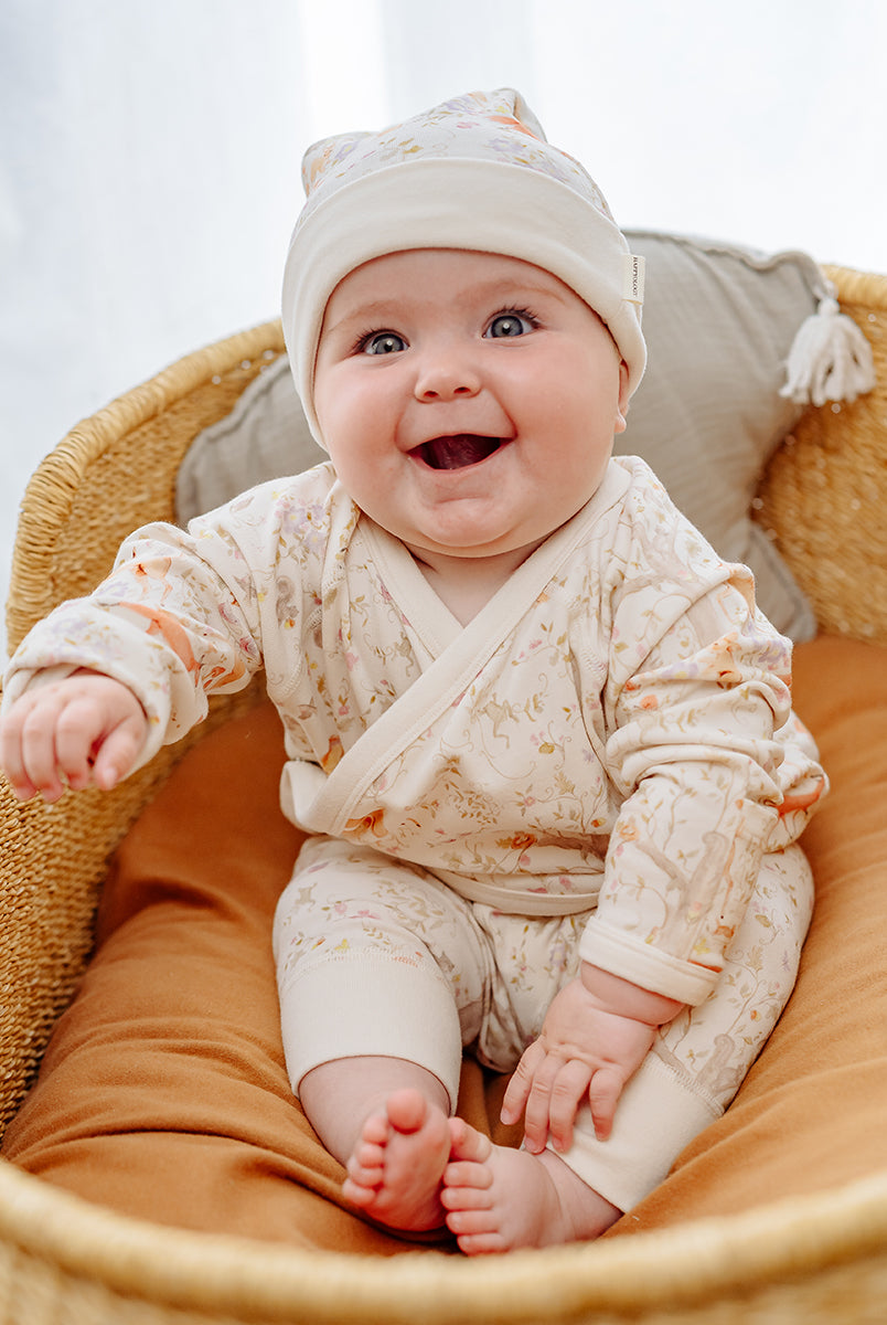 Made for first cuddles and tiny adventures, our newborn collection is crafted from buttery-soft organic cotton jersey and adorned with in-house prints. Gentle, breathable, and beautifully lightweight - each piece feels like a pure second skin for delicate newborn days.