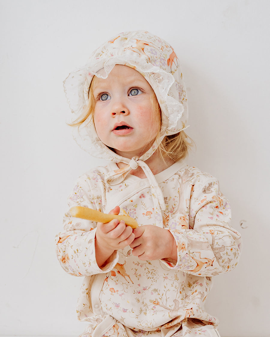 Made for first cuddles and tiny adventures, our newborn collection is crafted from buttery-soft organic cotton jersey and adorned with in-house prints. Gentle, breathable, and beautifully lightweight - each piece feels like a pure second skin for delicate newborn days.