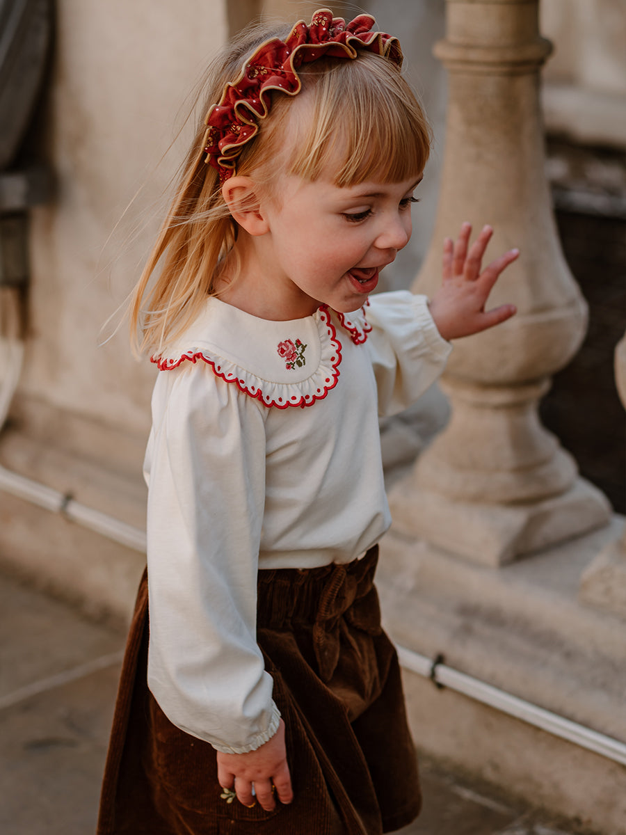 Alessia Hair Scrunchie, Wildflower Polka-Burgundy