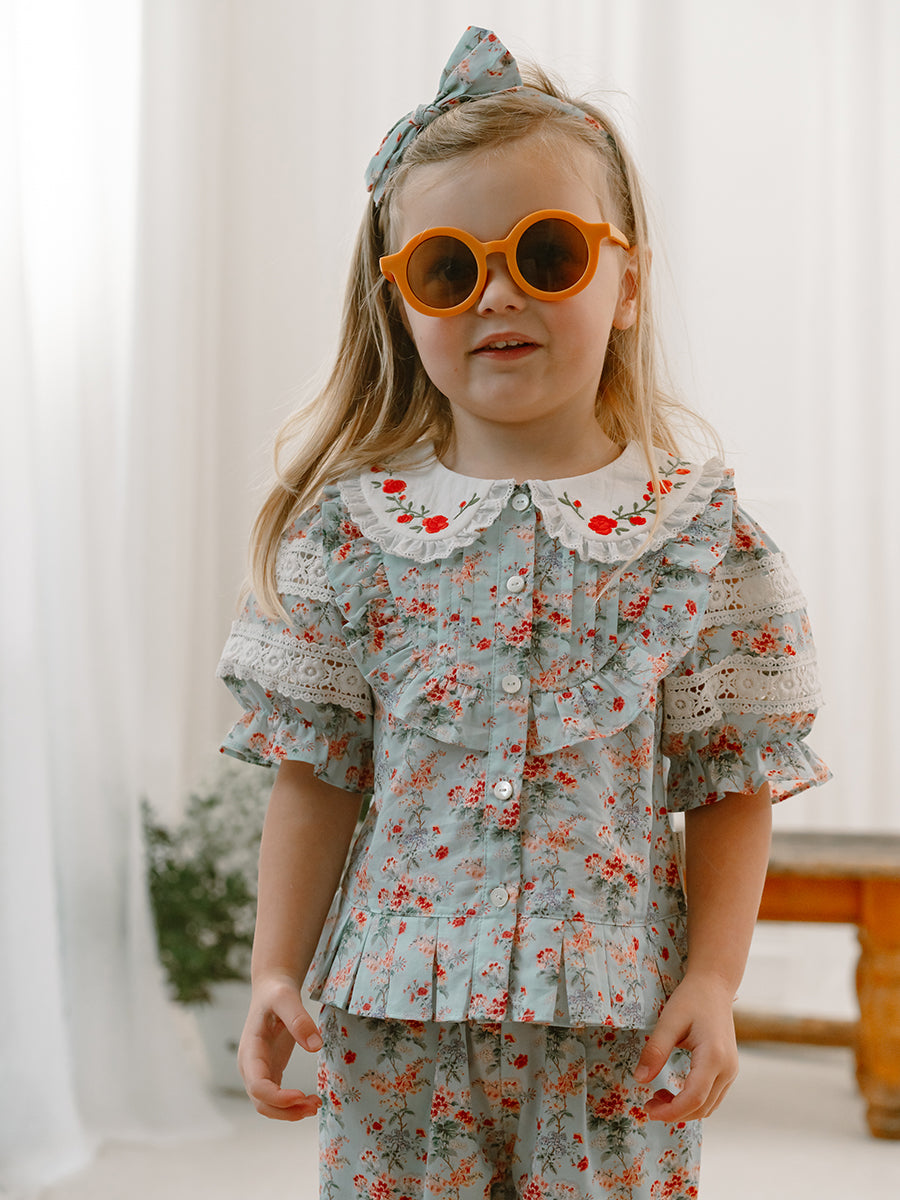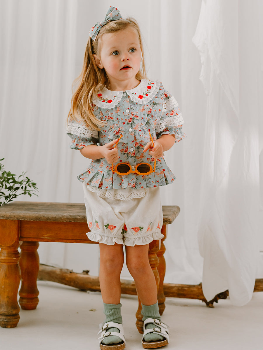 Segovia Embroidered Top, Ceramic Flowers, Blush