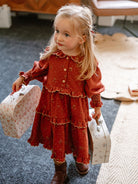 Celine Smocking Dress, Wildflower Polka, Burgundy