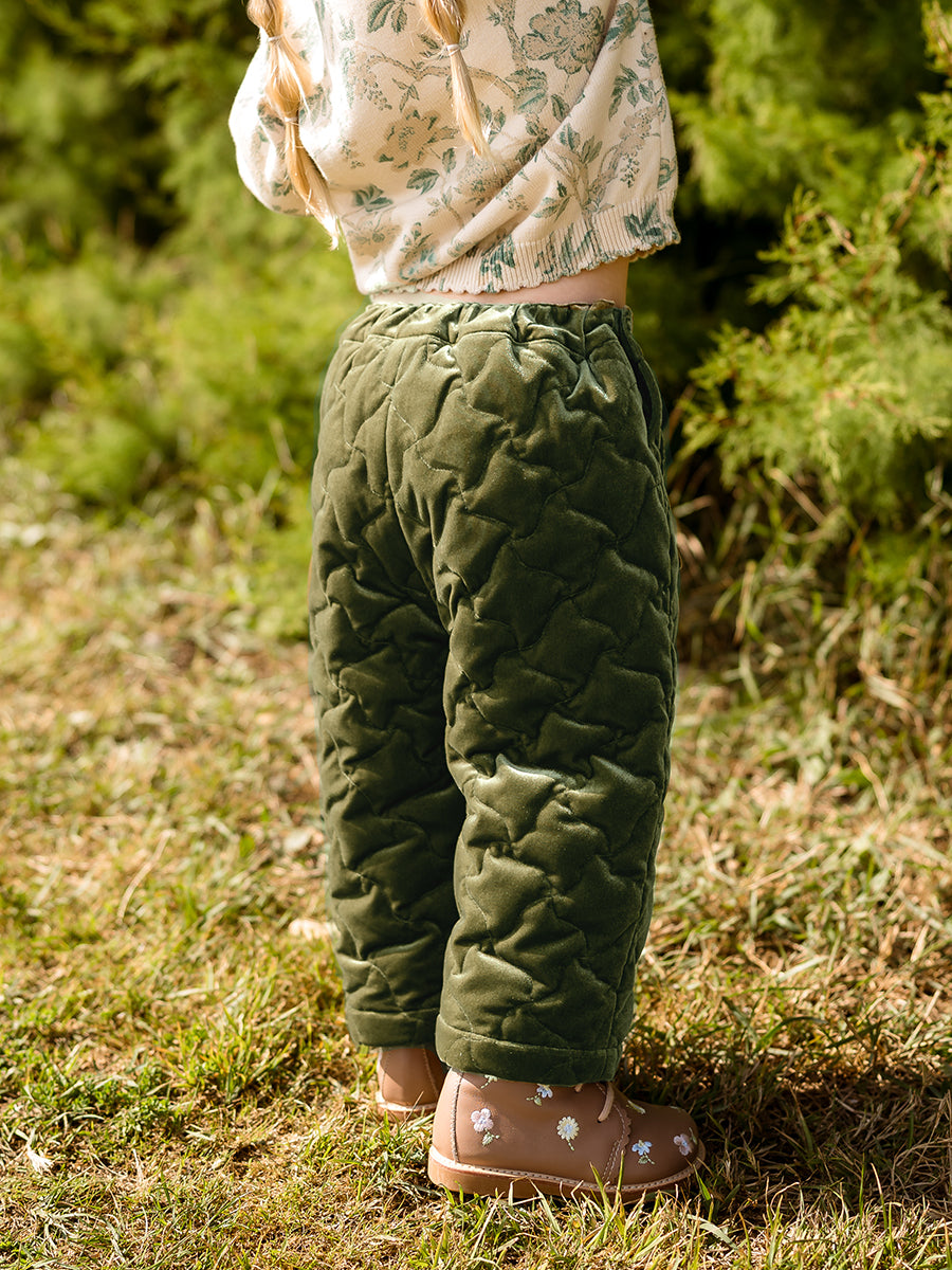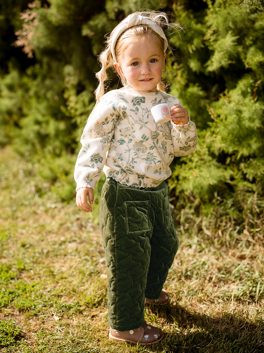 Camila Quilted Trousers, Strawberry Flower Field, White
