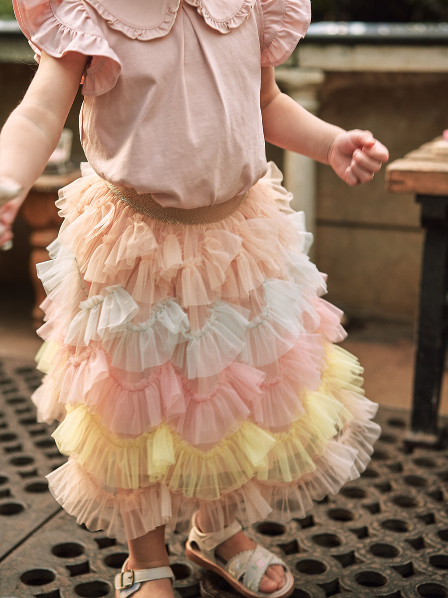Jessielle Ankle Socks with Floral Ruffle, Misty Pink & Crème Brulee