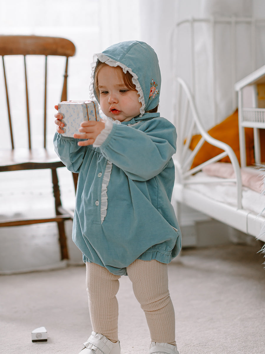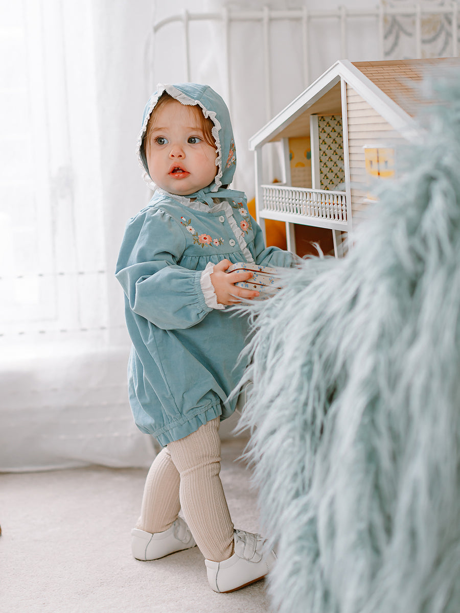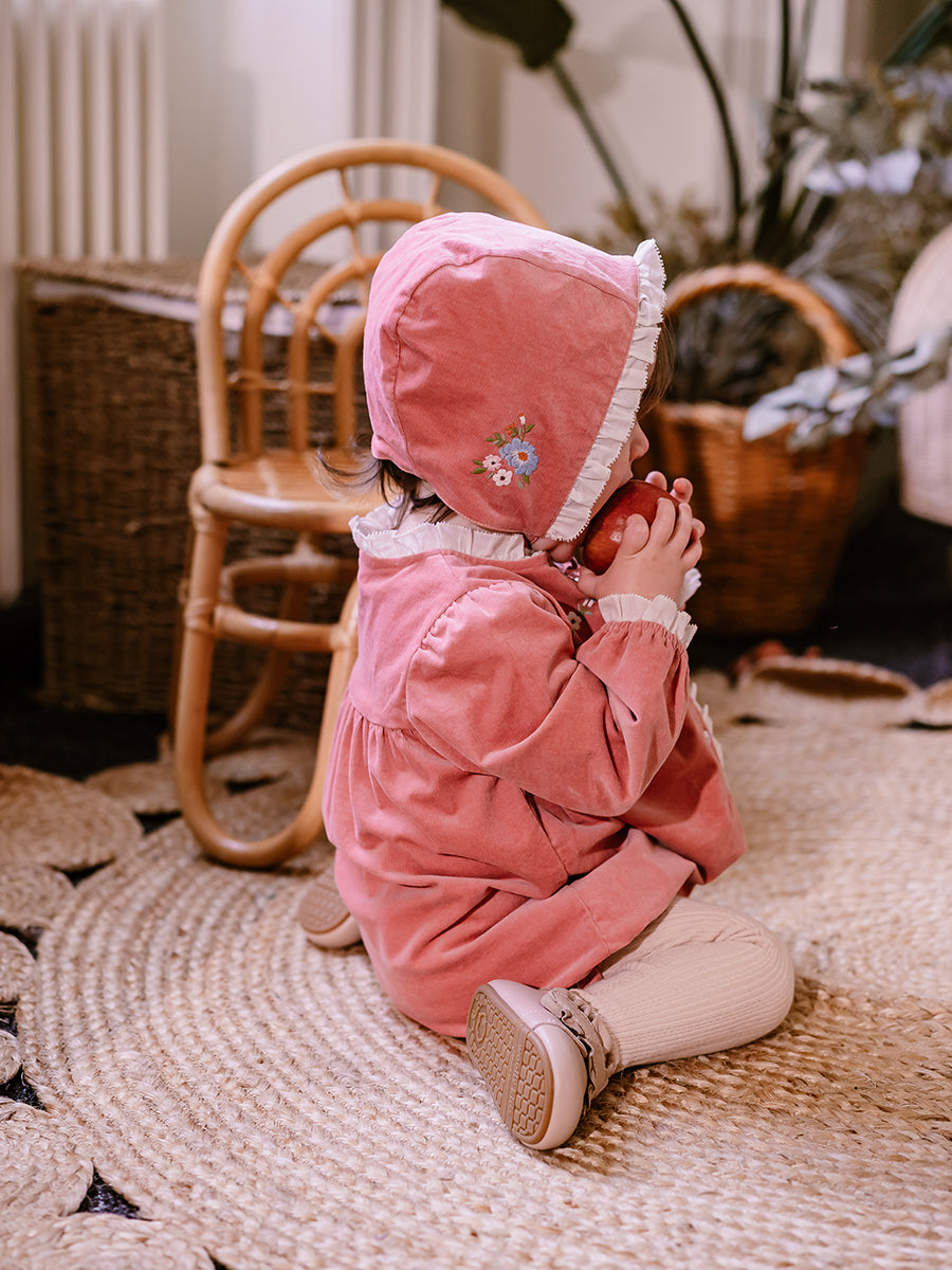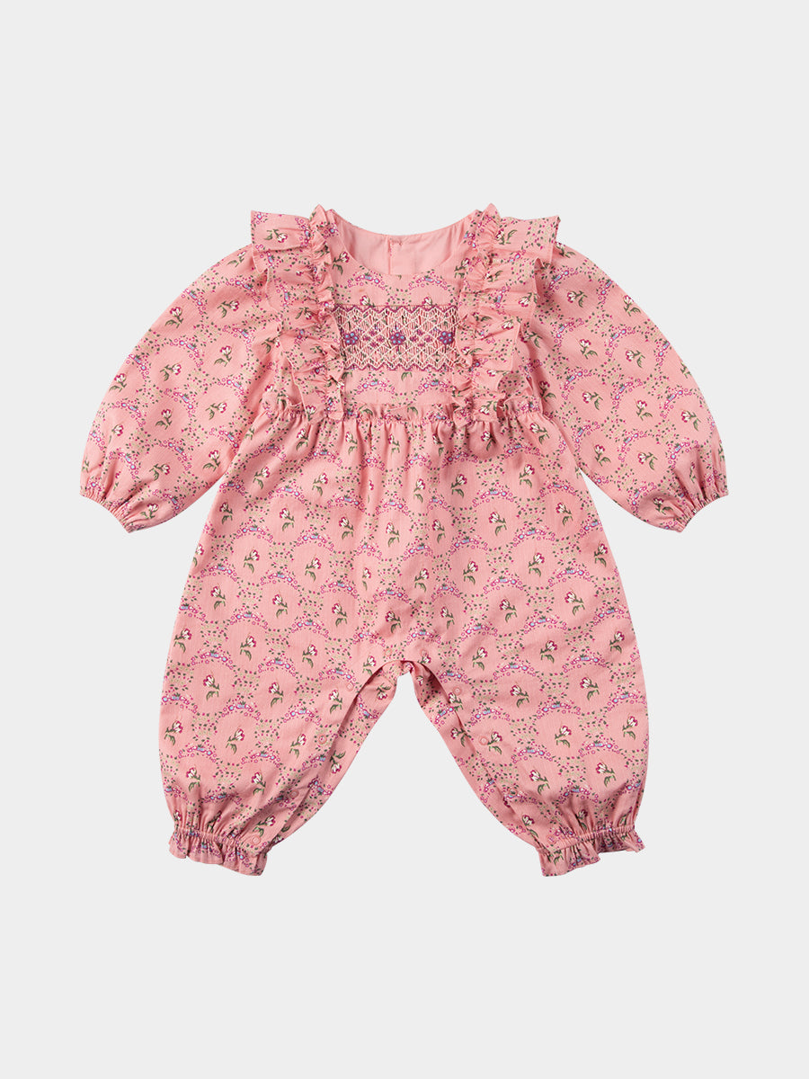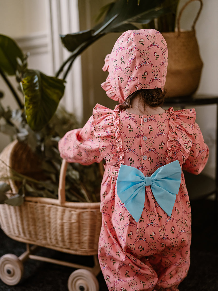 Adelaide Hand-Embroidered Romper, Vintage Bouquet, Rose