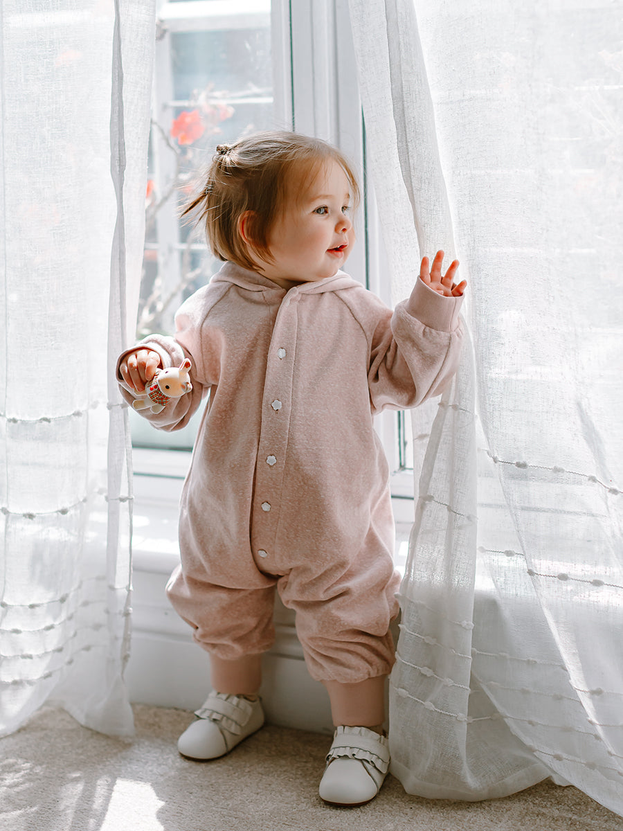 Organic Essential Long-Sleeve Sleepsuit, Peach