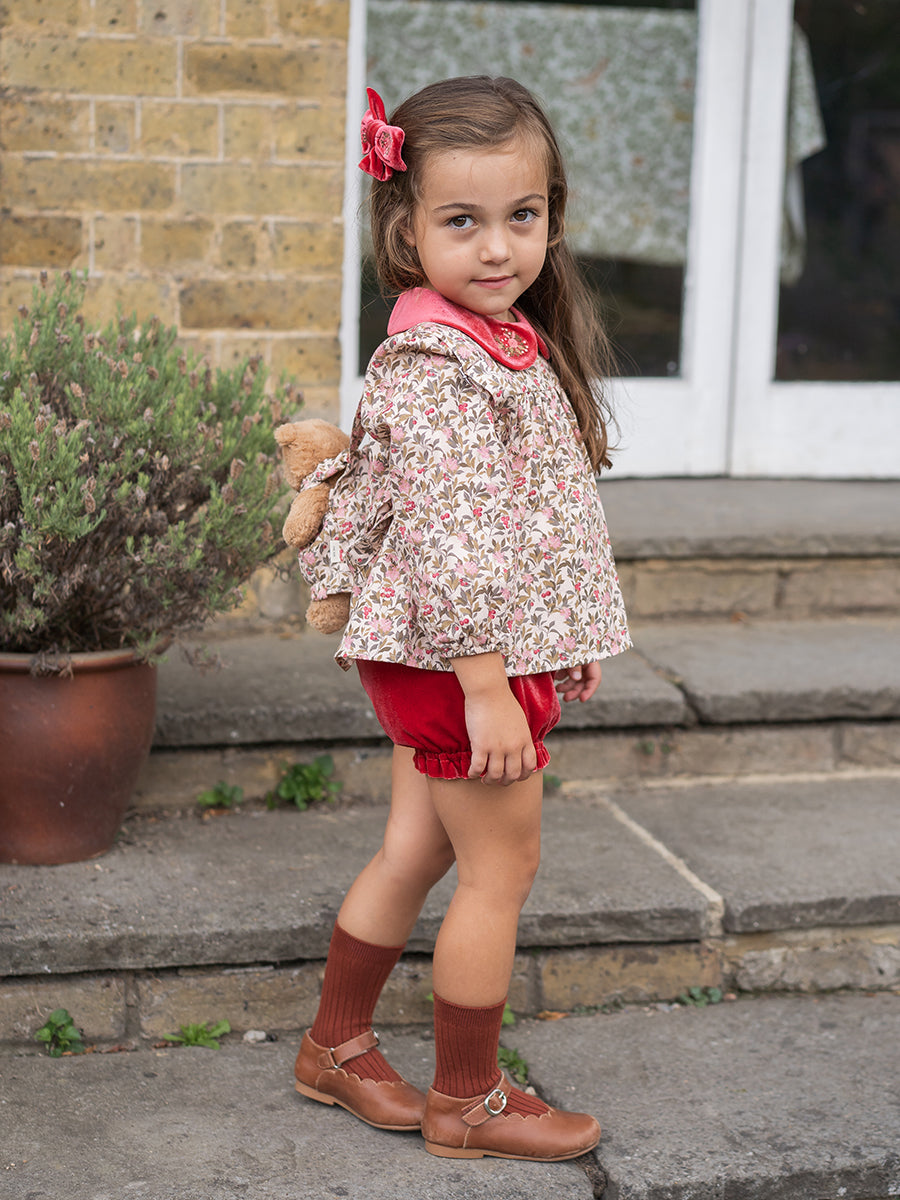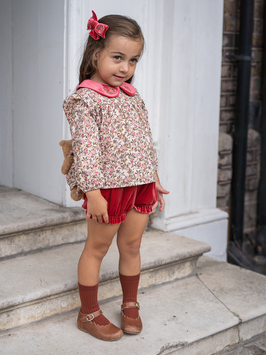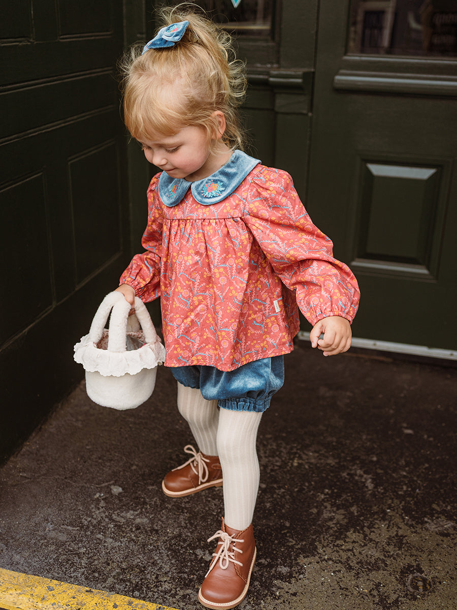 Luna Blouse and Bloomers Set, Strawberry Flower Field, Blush