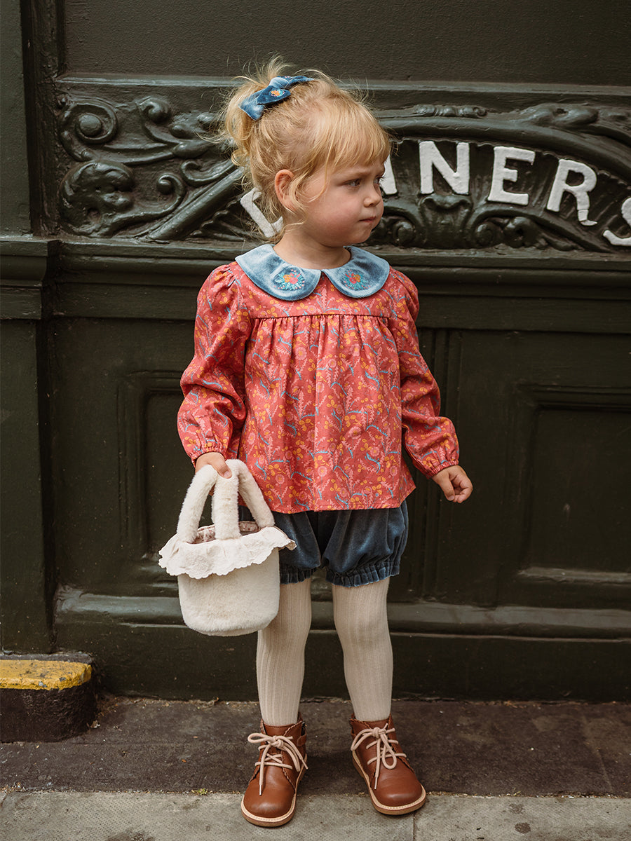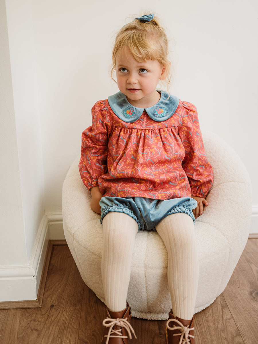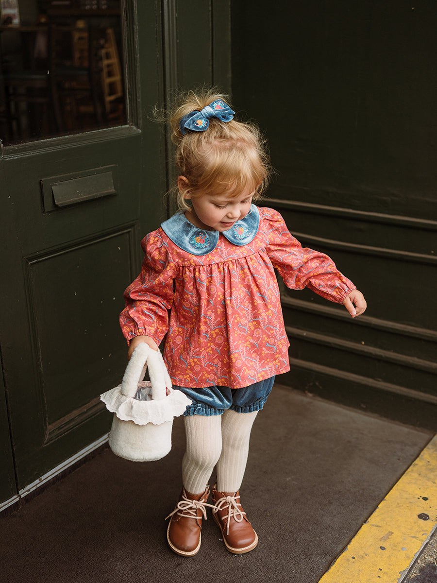 Luna Blouse and Bloomers Set, Strawberry Flower Field, Blush