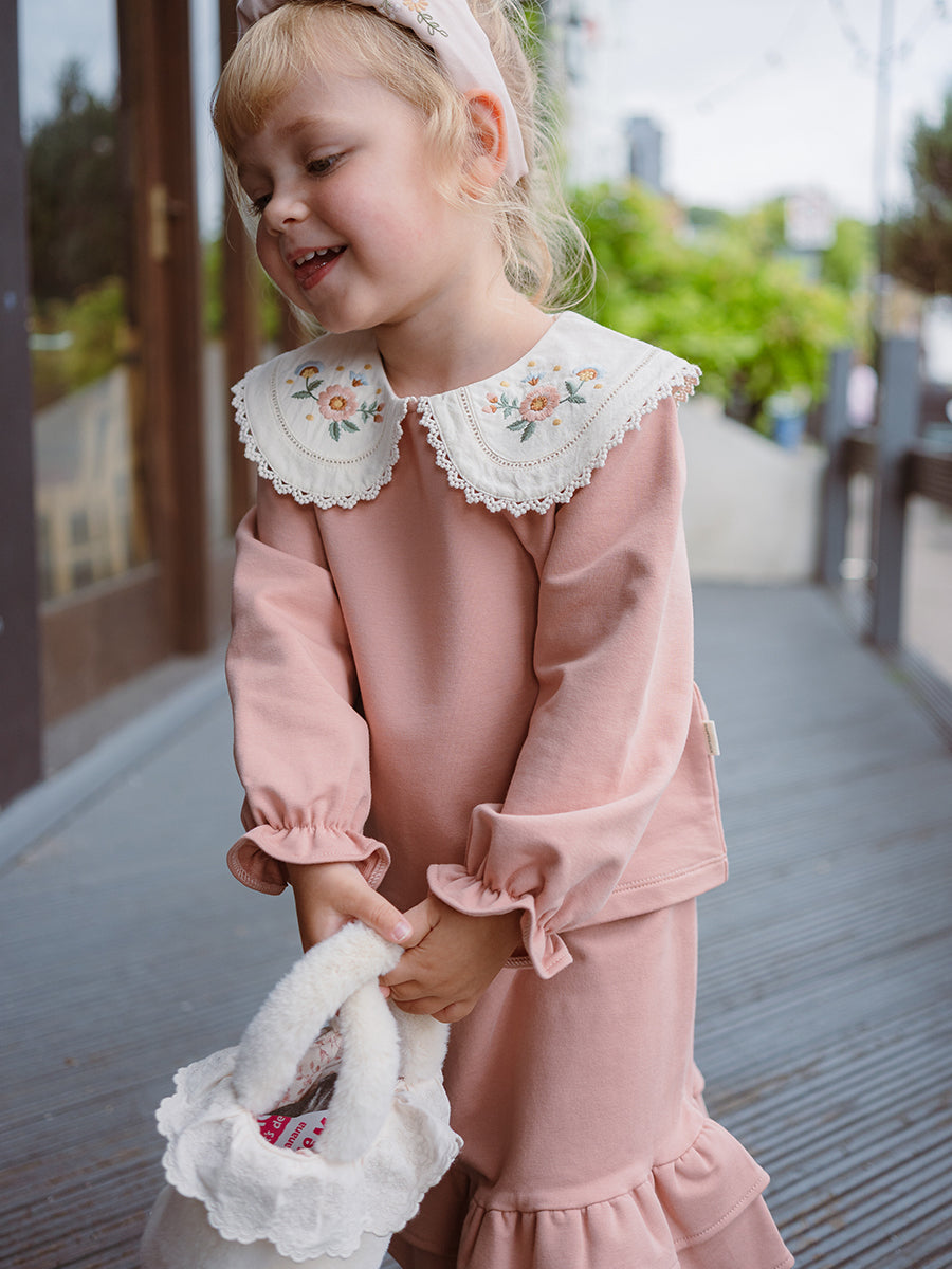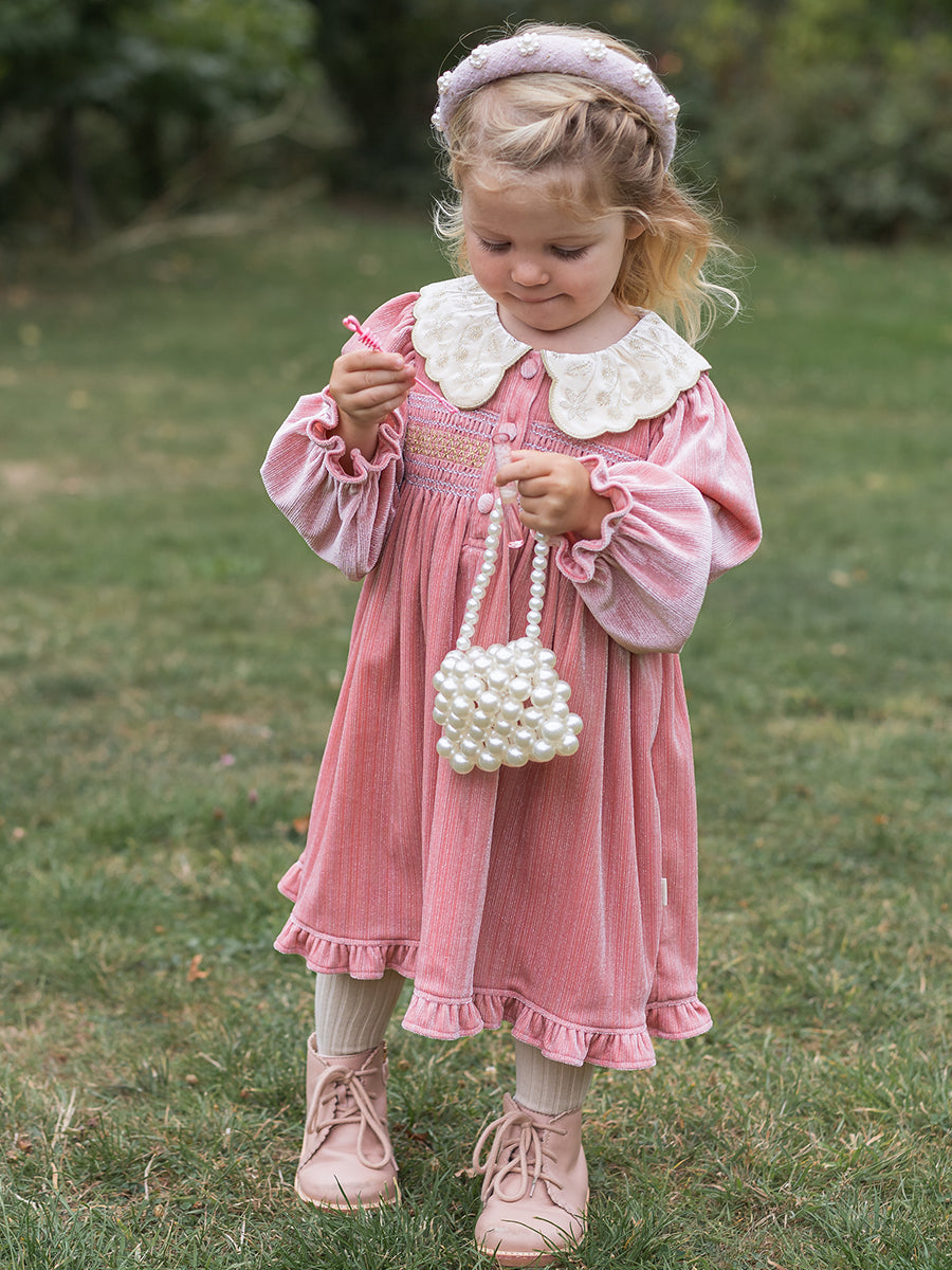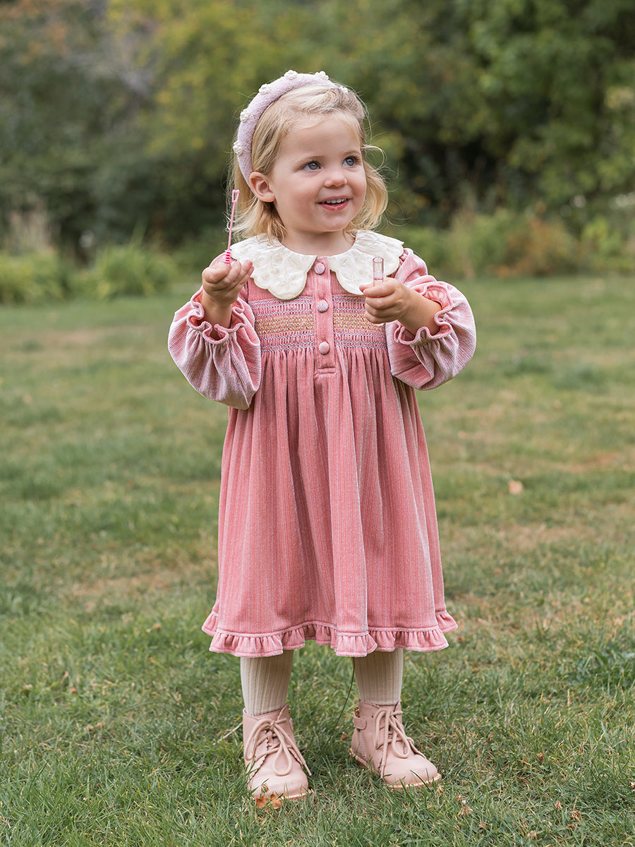 Kalmia Embroidered Corduroy Overall Dress, Misty Pink