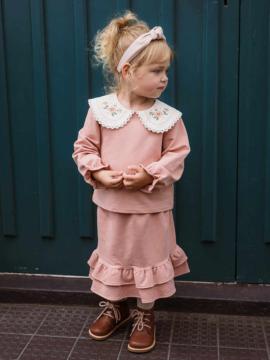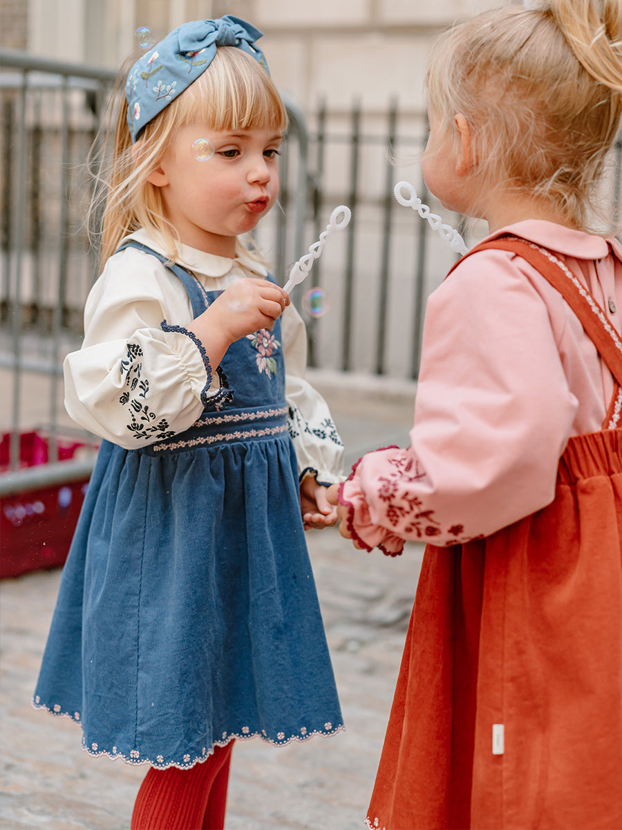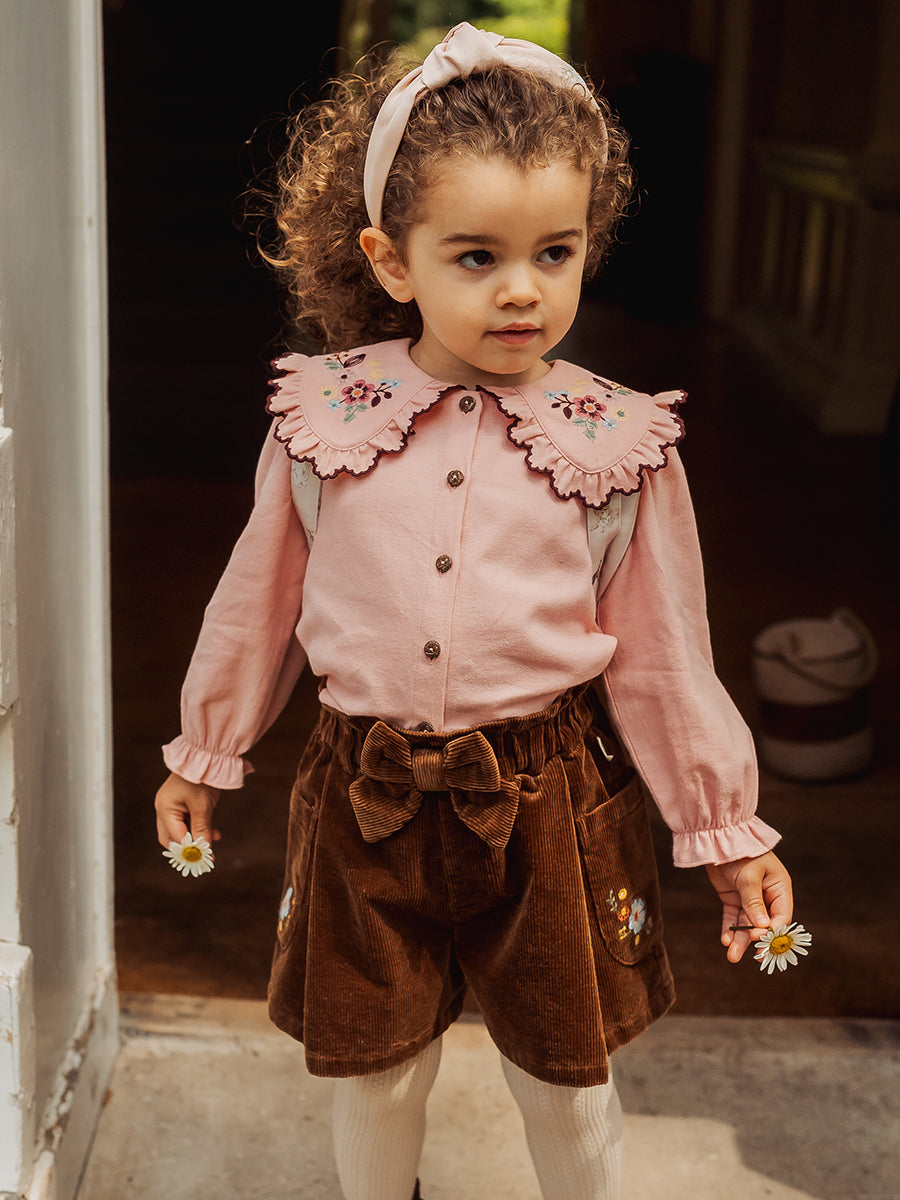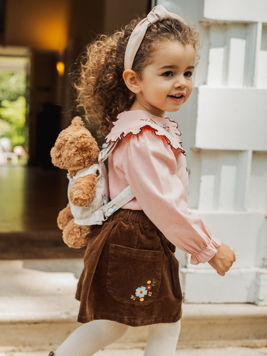 Kalmia Embroidered Corduroy Overall Dress, Misty Pink