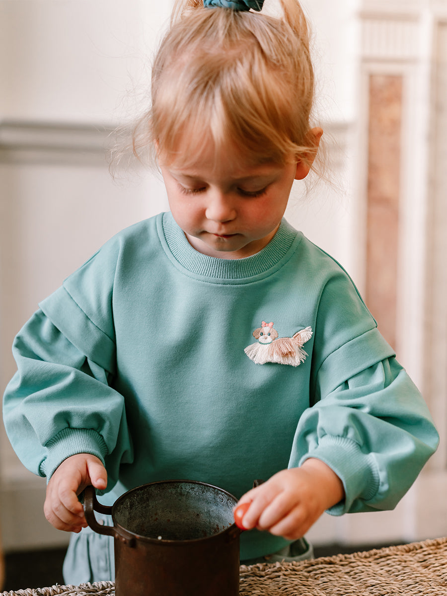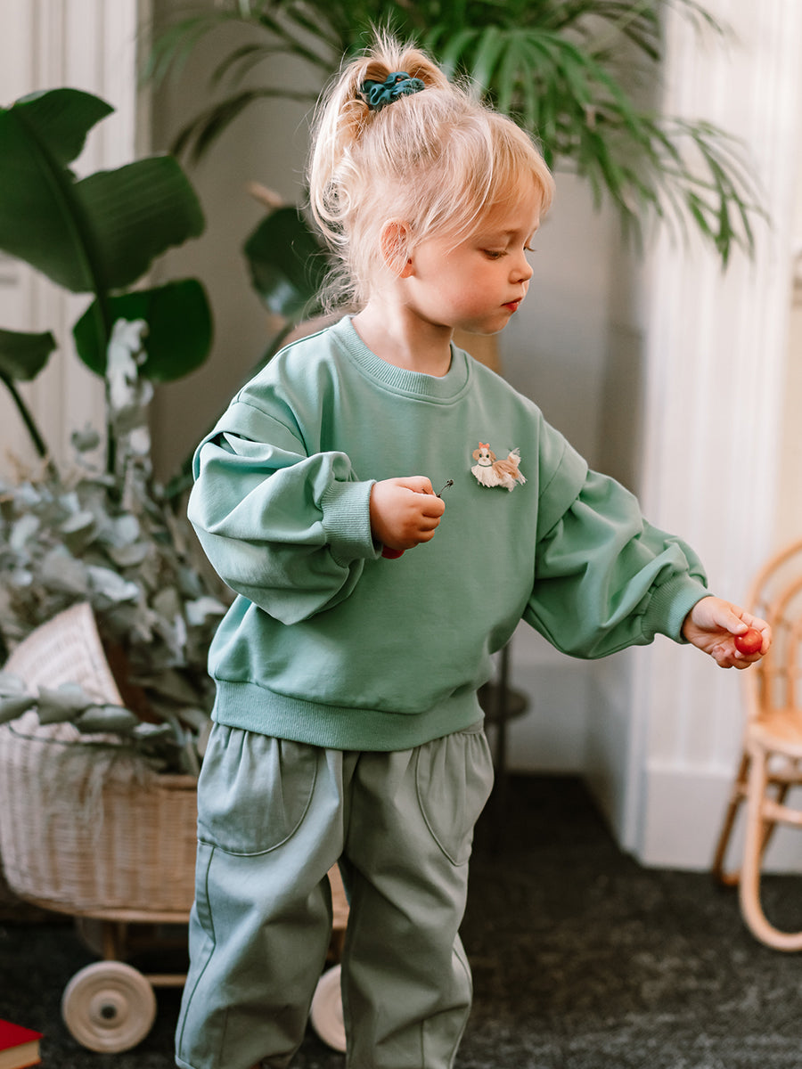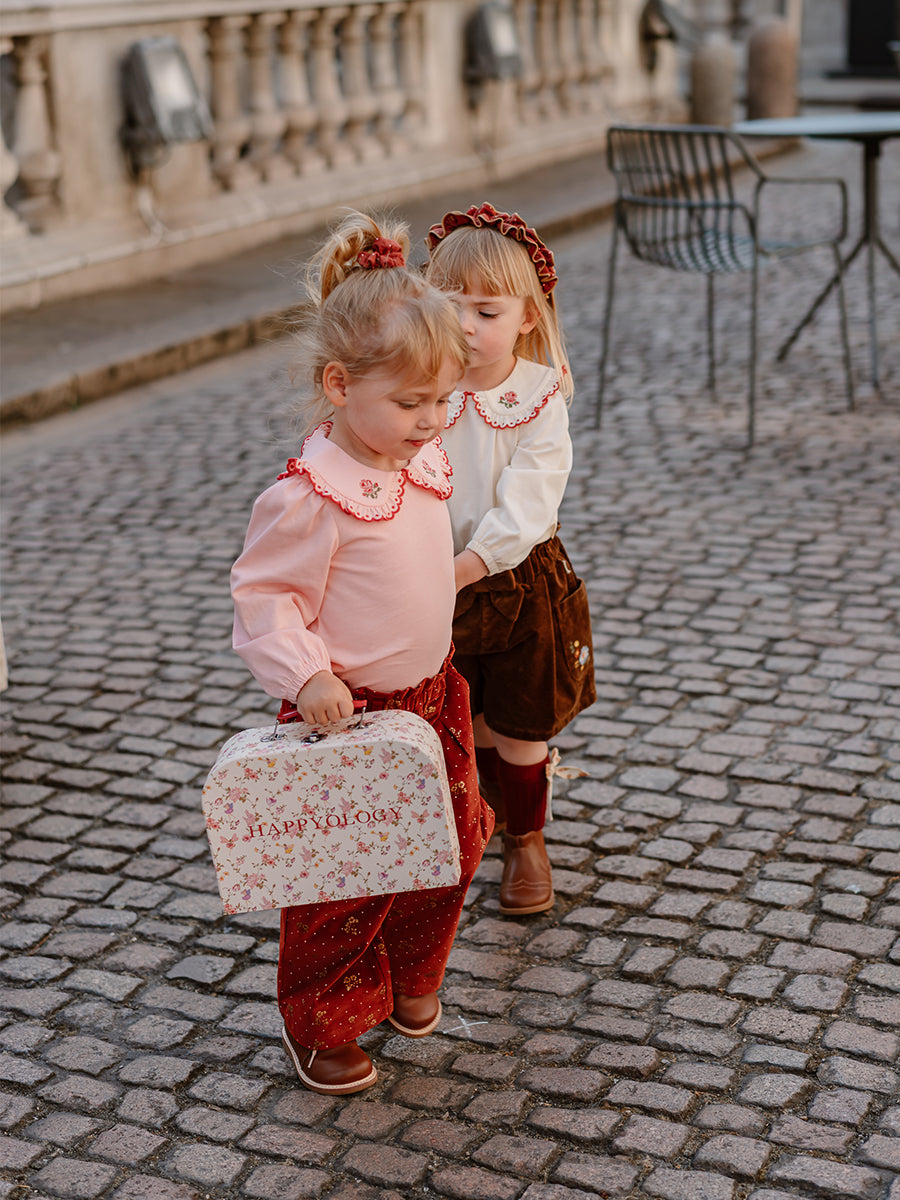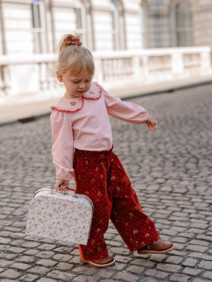 Strawberry Hand-Embroidered Knitted Pants, Crème Brulee