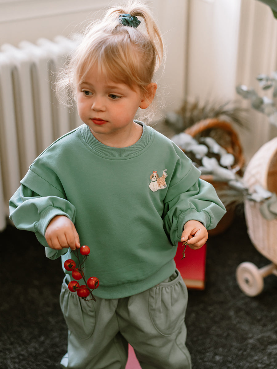 Kalmia Embroidered Corduroy Overall Dress, Khaki