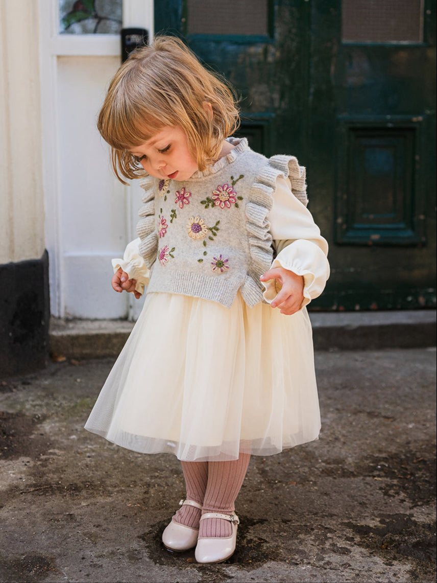 Leila Hand-Embroidered Knitted Vest, Cloudy Grey