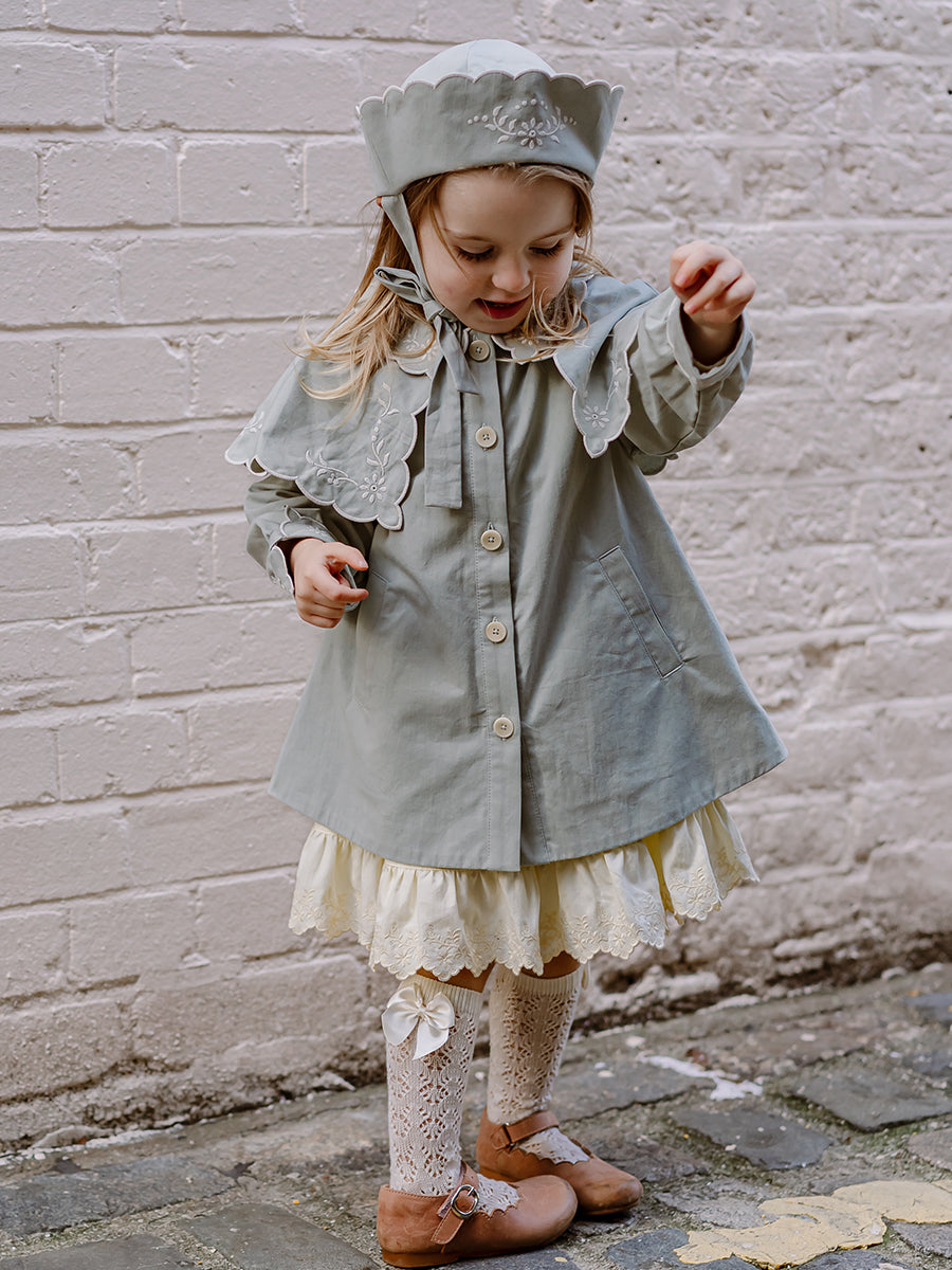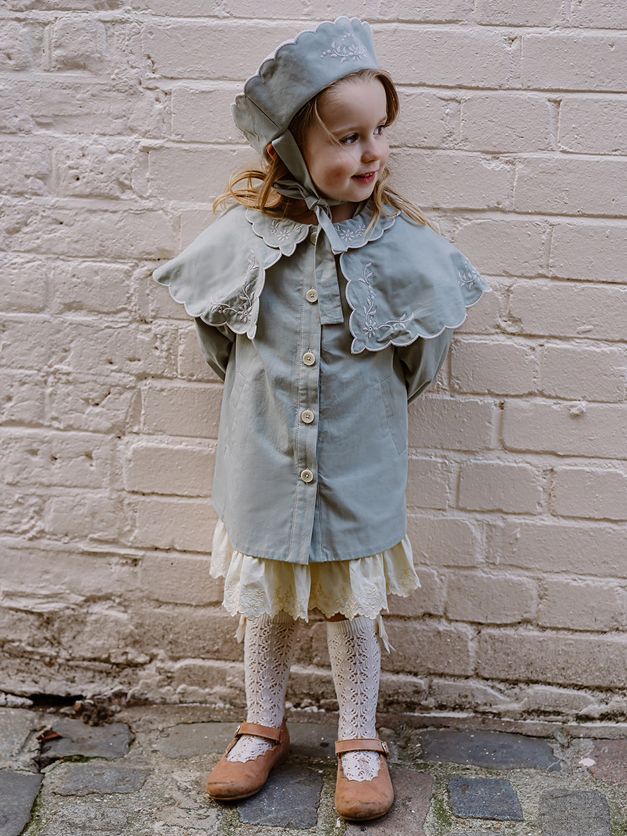 Monaco Embroidered Coat, Celadon