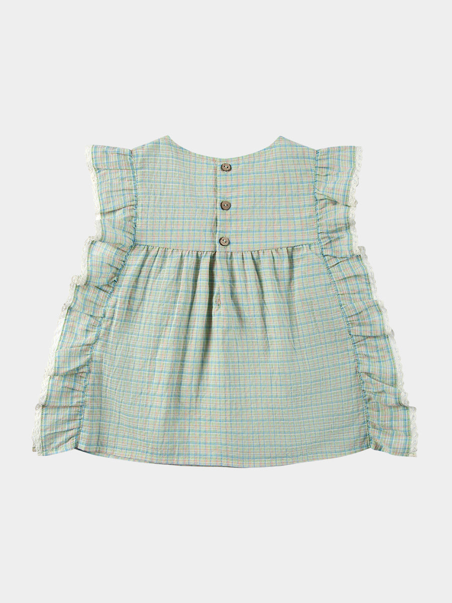Mysuru Embroidery Blouse, Green Check