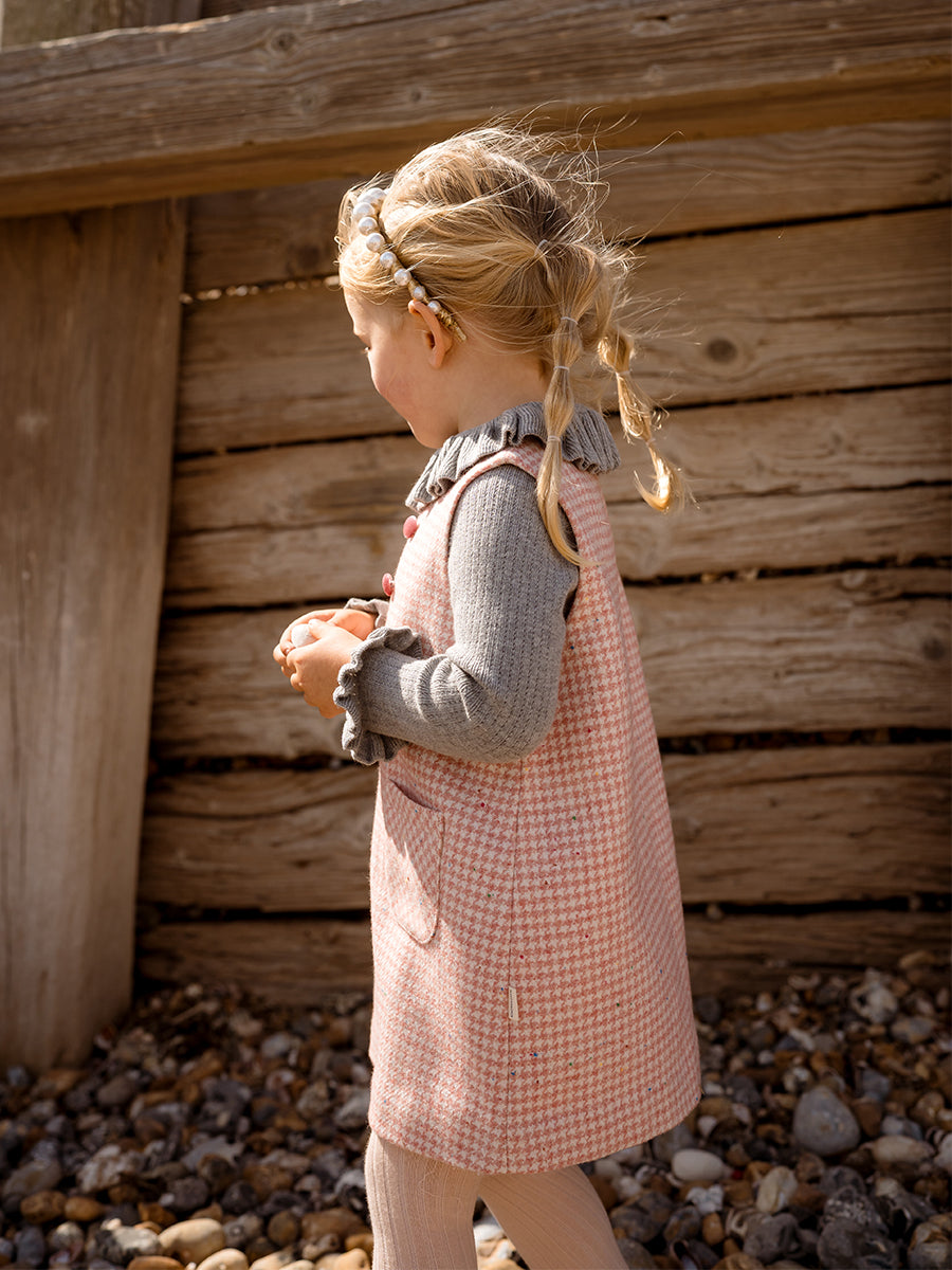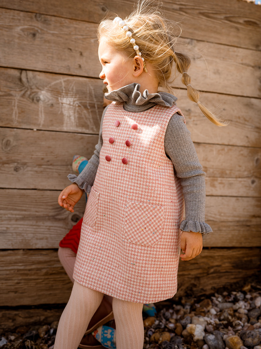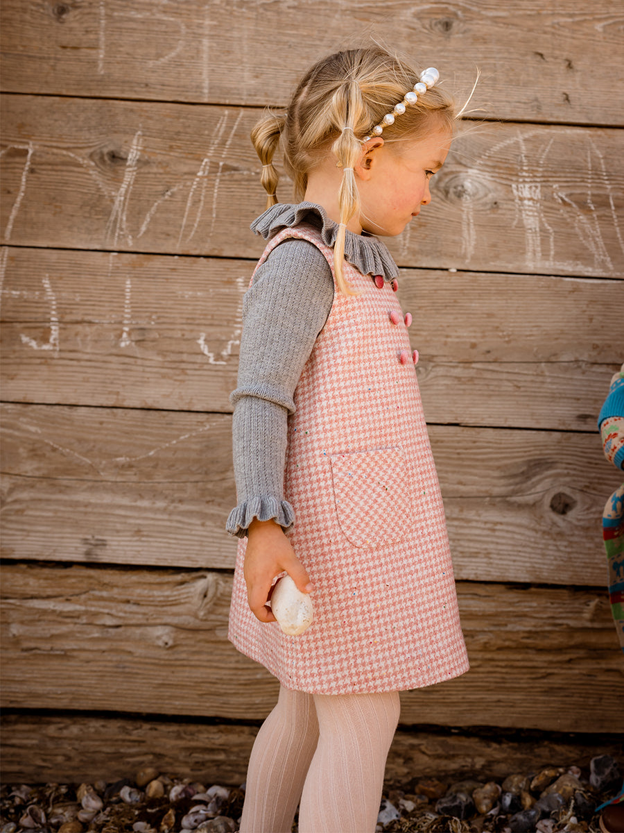 Mia Tweed Overall Dress, Pink Houndstooth