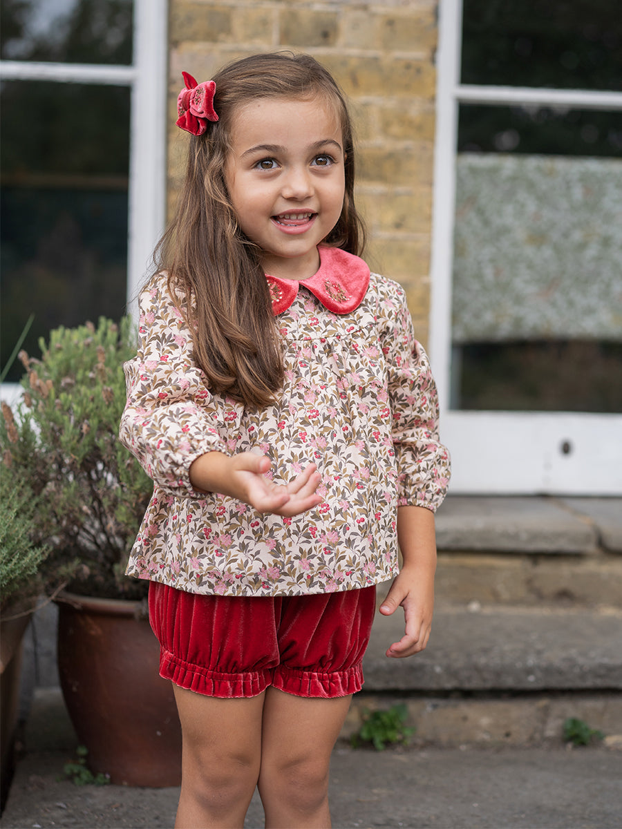 Luna Velvet Hair Bow, Agate Red