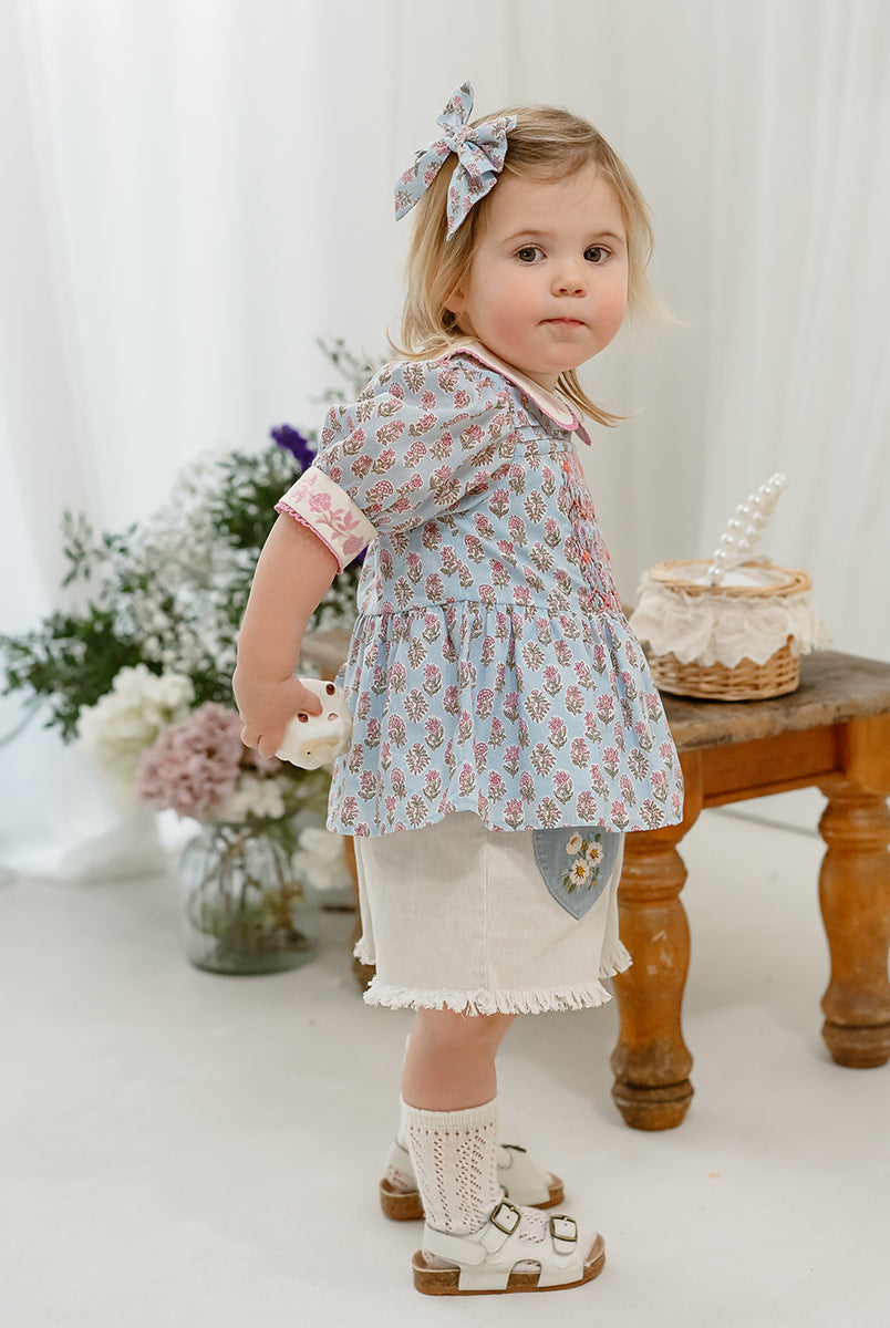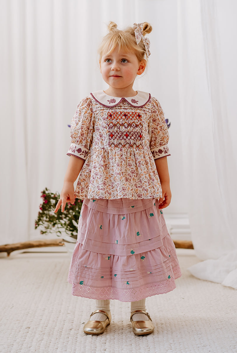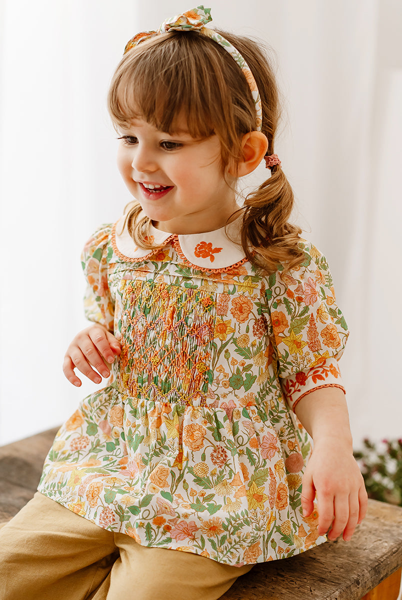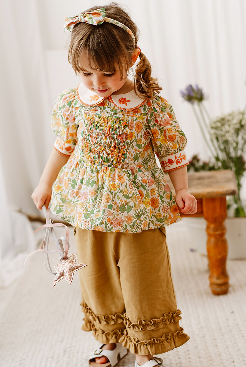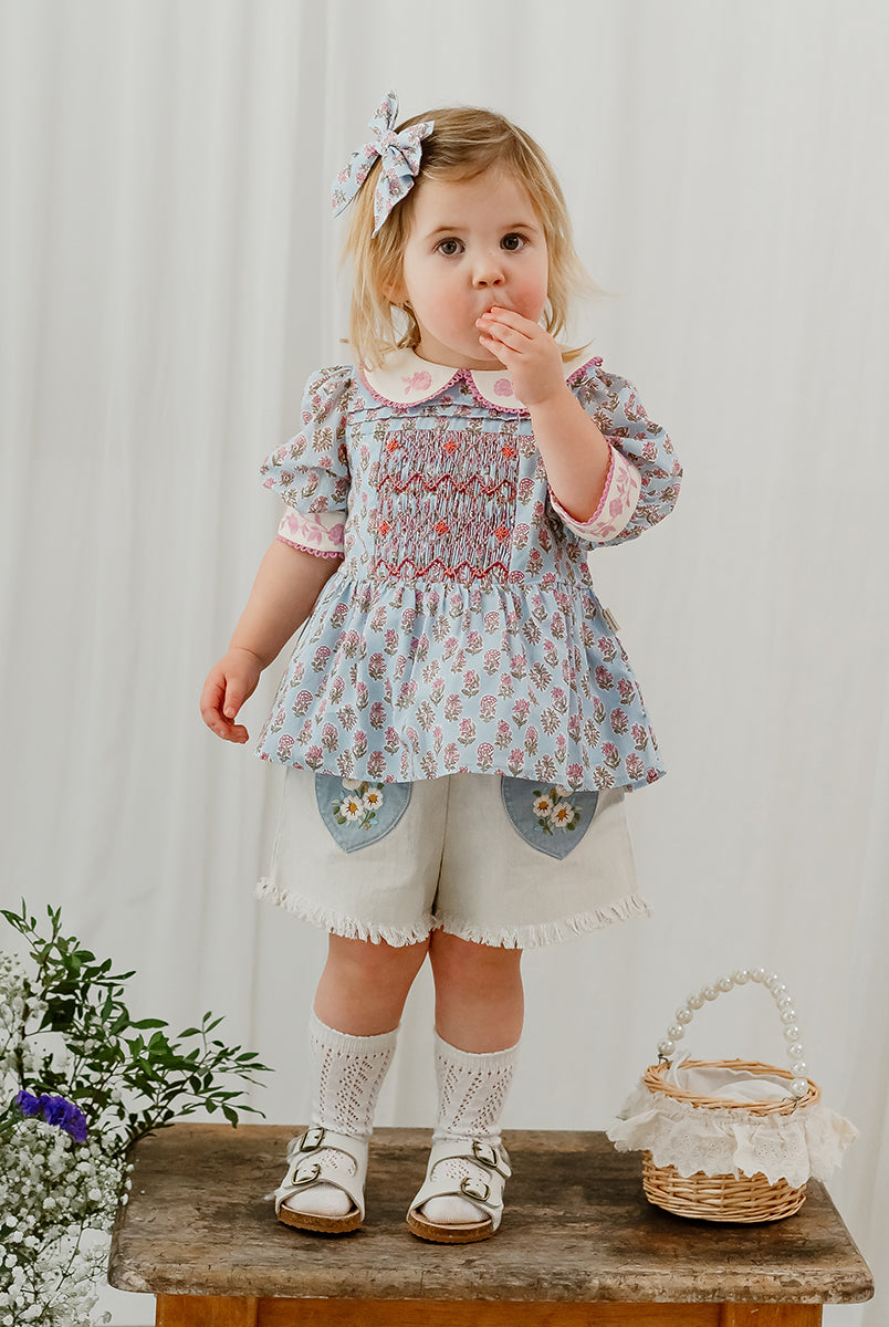 I adore the Quinn ladybird romper, the khaki ladybird embroidered trousers are also a favourite. And the Lindsey hand-smocking blouse – the romantic frills are adorable and such a pretty print.
