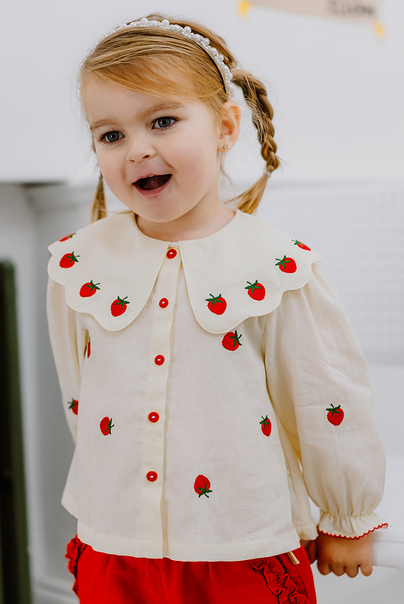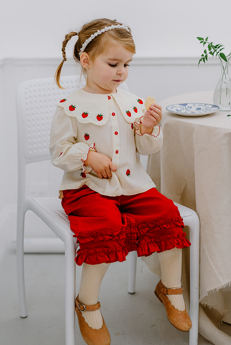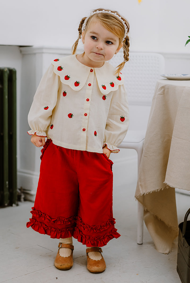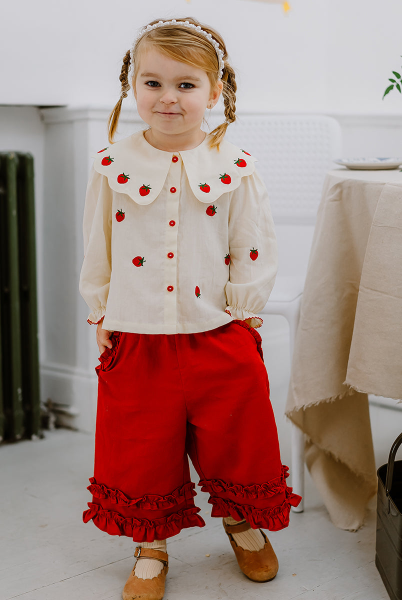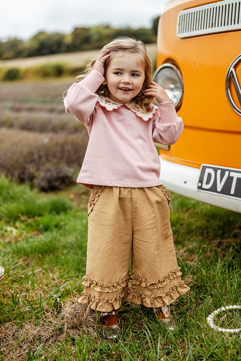I adore the Quinn ladybird romper, the khaki ladybird embroidered trousers are also a favourite. And the Lindsey hand-smocking blouse – the romantic frills are adorable and such a pretty print.