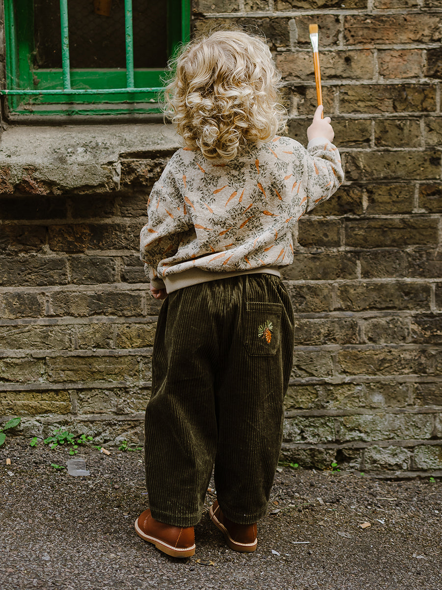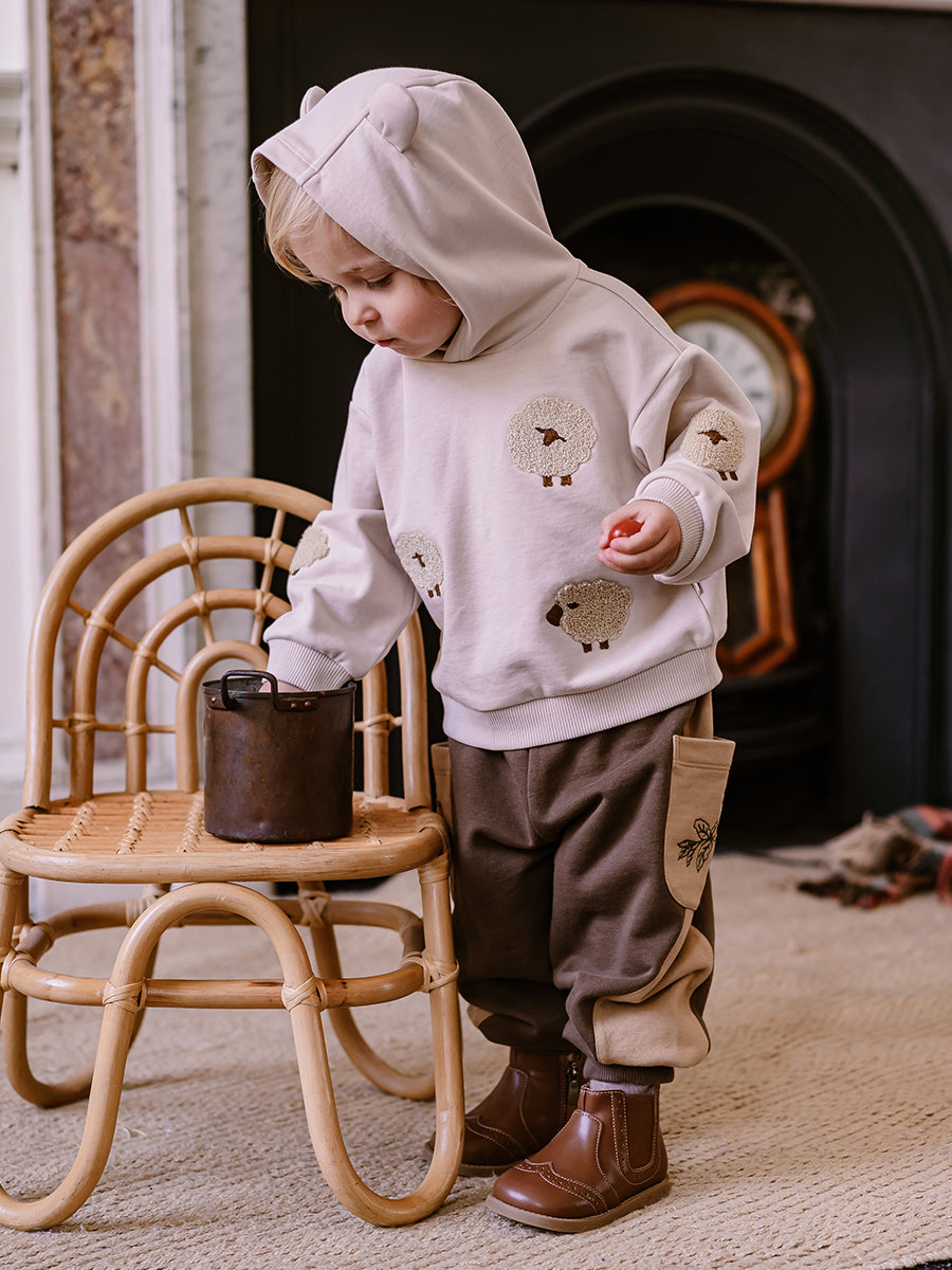 Strawberry Hand-Embroidered Knitted Pants, Crème Brulee