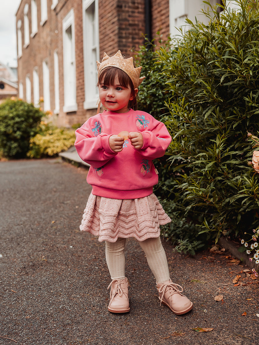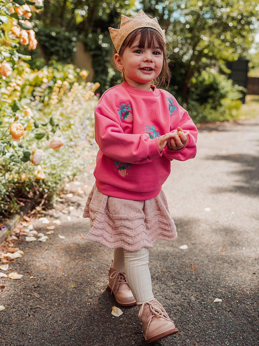 Strawberry Hand-Embroidered Romper, Princess Pink