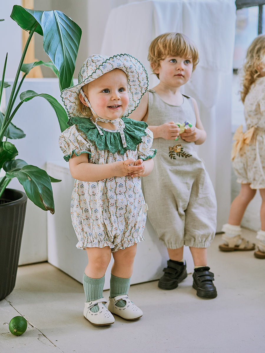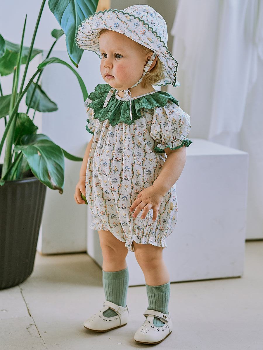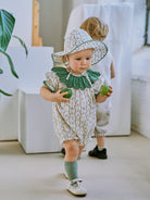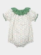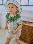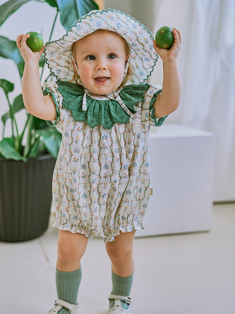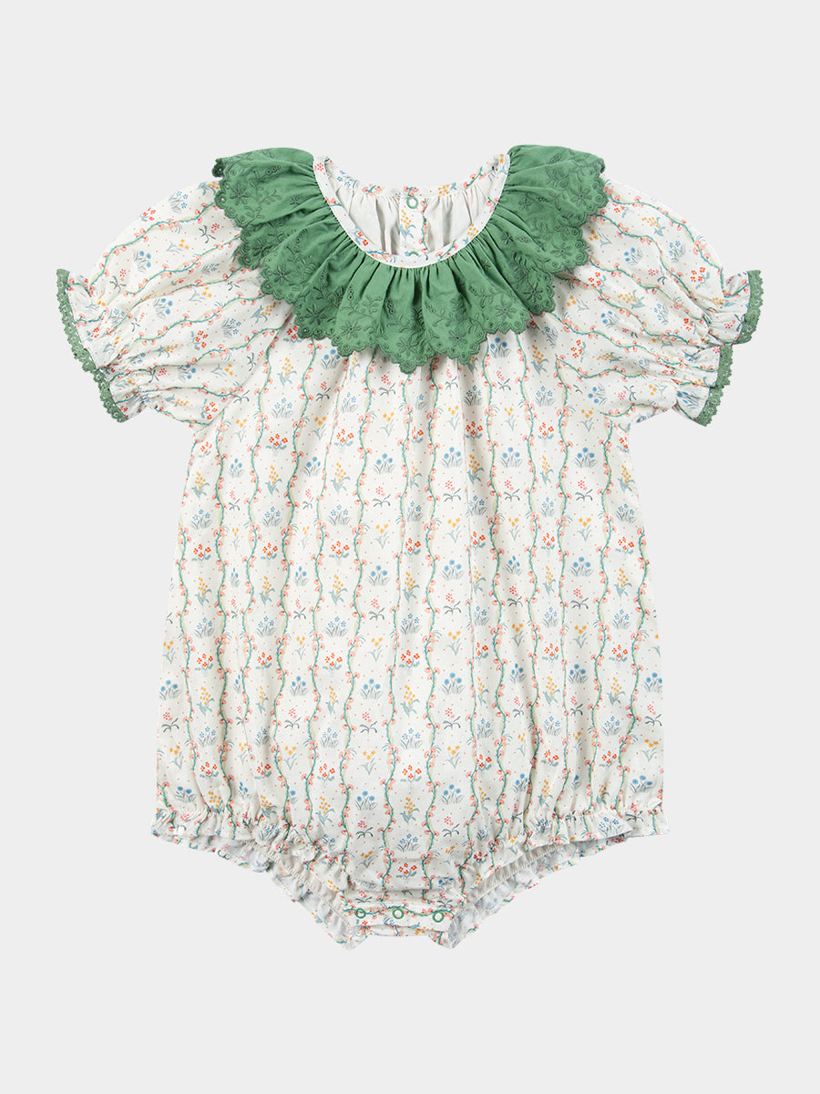 Grasmere Embroidered Collar Romper, Vintage Vine Stripes Green
